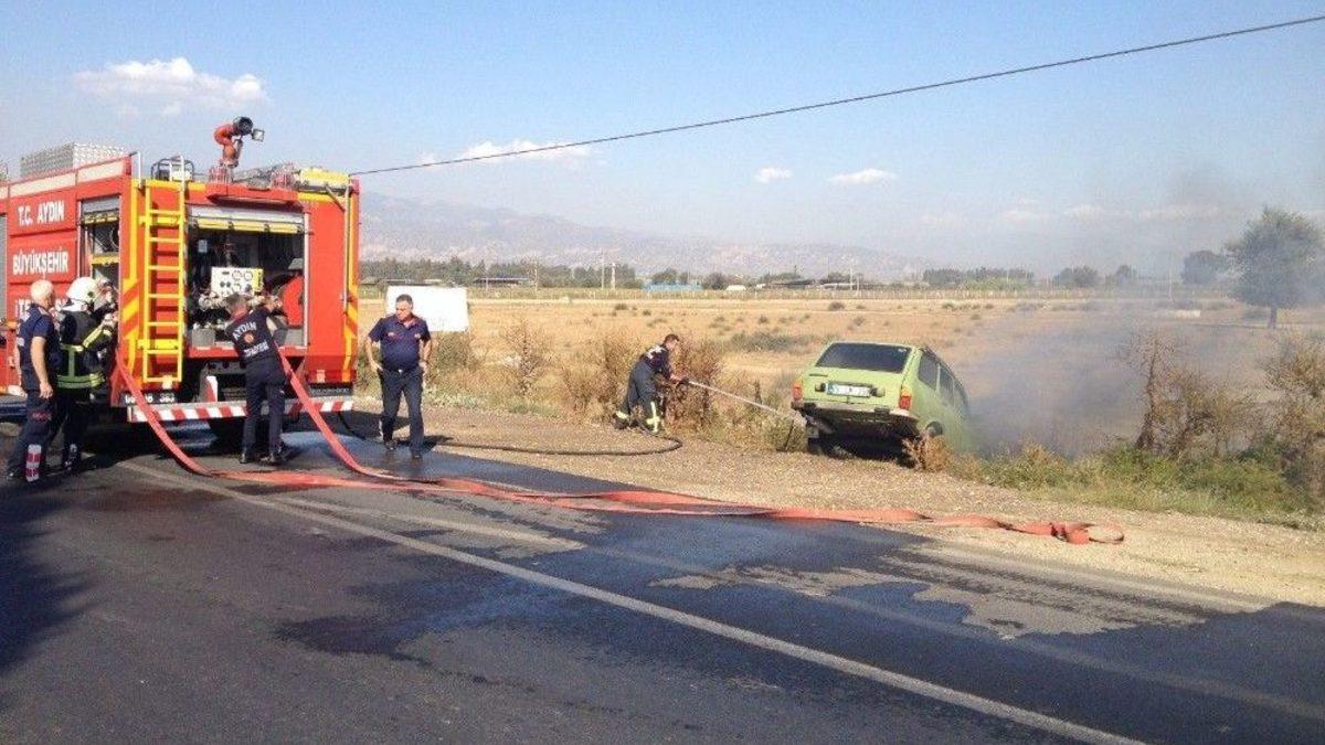 Aydın’da seyir halindeki bir otomobil bir anda alev topuna döndü. Araç sürücüsü ve yolcular arkadan gelen sürücülerin ikazı üzerine yanmakta olan aracı terk ederek canlarını kurtardı.Olay, Aydın-Muğla karayolu Ovaeymir uygulama merkezi yakınlarında meydana geldi. Edinilen bilgiye göre, Çine’den Aydın istikametine ilerleyen Ahmet Öztürk yönetimindeki 09 LM 259 plakalı araç henüz belirlenemeyen nedenle yanmaya başladı. Aracın yandığından habersiz sürücünün yoluna devam ettiğini gören diğer sürücüler, yanan aracın sürücüsünü ışık ve korna ile uyardı. Aracının yandığını sonradan fark eden sürücü panikle aracını yol kenarına çekerek kendini dışarı attı. Araç bir süre sonra şarampole girdi. Yangını gören diğer sürücüler itfaiye ekiplerine haber verdi. Bu sırada olay yerinden tesadüfen geçen Aydın Büyükşehir Belediyesi’ne ait sulama aracı yanan araca müdahale etti.Kısa sürede olay yerine gelen Aydın Büyükşehir Belediyesi İtfaiye ekipleri yangını söndürdü. Tüplü aracın patlama tehlikesine karşı önlem alındı. Olayda otomobil yanarak kullanılamaz hale gelirken, yangında can kaybı ve yaralanmanın olmaması teselli kaynağı oldu.