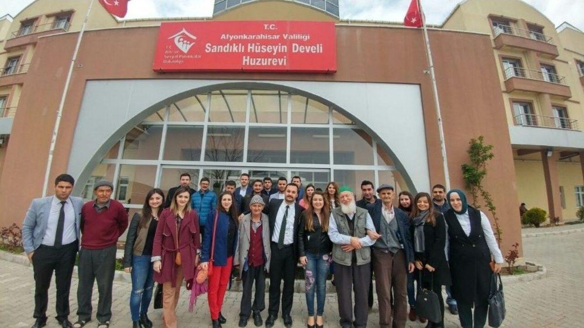 Sosyal Güvenlik Kurumu (SGK) Kayıt Dışı İstihdamla Mücadele Daire Başkanlığı tarafından Afyonkarahisar’ın Sandıklı ilçesinde düzenlenen seminere katılan denetmen yardımcıları Hüseyin Develi huzurevindeki yaşlıları ziyaret etti.Sandıklı ilçesi Hüdai Kaplıcalarında bulunan termal bir otelde seminere katılan kursiyerler huzurevinde ki yaşlıları ziyaret ederek büyük bir vefa örneği gösterdiler. Yaklaşık 50 kursiyerin katıldığı ziyarette arkadaşları adına konuşan otel sorumlularından Ayşe Adalı, “Sosyal sorumluluk çerçevesinde arkadaşlarım ile yaşlı büyüklerimizi ziyaret ettik. Onlarla sohbet ederek kendilerinin yalnız olmadıklarını, unutulmadıklarını hatırlatmak istedik. Onlara çiçek verip ellerini öptük. Kendileri bizlere anılarını, hatıralarını anlattılar. Aslında hepsinin ayrı bir tarih olduğunu gördük. Arkadaşlarımızda bu ziyaretten çok mutlu oldular” diye konuştu.