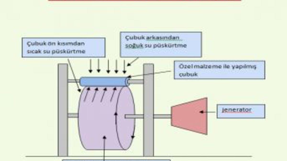 ÇOBİLTUM Müdürü Kaya, proje hakkında şu bilgileri verdi: "Silindir üzerinde bulunan özel alaşımlı çubuğun bir yanından soğuk, diğer yanından sıcak su dökülünce, içinde oluşan kristal yapıdaki değişim sonucunda alaşımla çubuk içindeki özel malzeme etkileşir. Çubuk, alaşımla beraber silindiri teğet olarak bir yönde çeker ve döndürür. Çubuk kendisi de döner ve silindiri devamlı teğet olarak çeker. Silindirin çapı ve uzunluğu arttırılarak, etrafına yerleştirilecek çubuk sayısı da arttırılabilir. Böylece silindiri döndürecek tork miktarı artar. Kullanılan soğuk ve sıcak su da doğru orantılı olarak artacaktır. Güneş enerjisiyle üretilecek ve jeotermal kaynaklardan elde edilecek sıcak su bir depoda toplanarak, bu sistem düzenli olarak yılın her günü 24 saat çalışabilir. Böylece enerji dönüşümünde sürdürülebilirlik sağlanır.