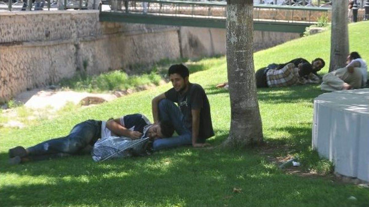 Gaziantep’te Ramazan ayının gelişi ile birlikte aşırı sıcaklardan bunalan vatandaşlar, gölgelik alanlara akın ederek iftar saatinin gelmesini bekliyor.