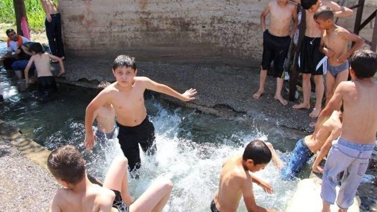 Sıcaktan Bunalan Çocuklar Su Kanalına Akın Etti