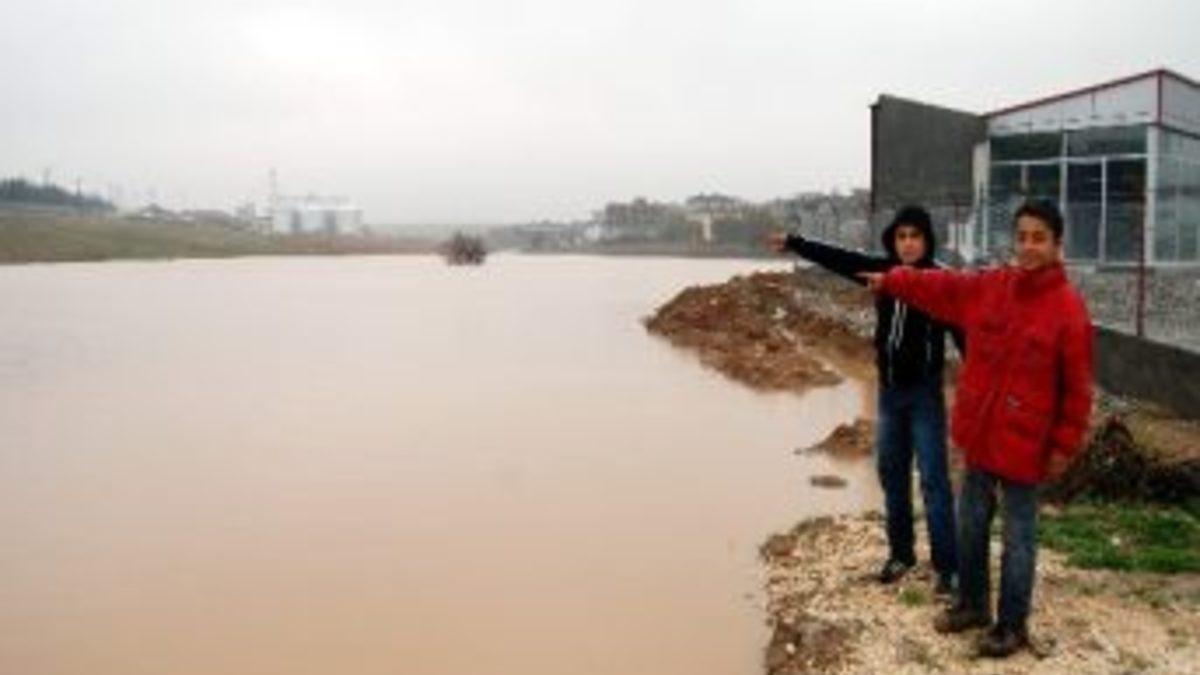 Adıyaman’da etkili olan şiddetli yağış sonucu araziler sular altında kalırken, derenin taşması sonucu bir köprü...