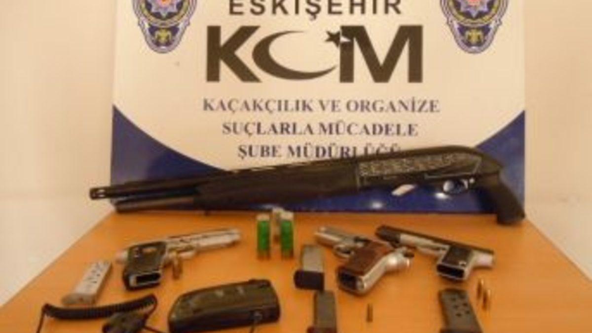 Eskişehir İl Emniyet Müdürlüğü ekipleri tarafından yapılan operasyonda çok sayıda tabanca ve mühimmatı ele geçirilirken, olayla ilgili 6 şüpheli yakalandı.Alınan bilgiye göre, bir ihbarı değerlendiren Kaçakçılık ve Organize Suçlarla Mücadele Şube Müdürlüğü ekipleri, O.S., S.Ç., T.A. ve M.M.’nin ruhsatsız silahları sattığını belirledi. Bunun üzerine yapılan operasyonda M.T. ve H.E., ruhsatsız silahları O.S., S.Ç., T.A. ve M.M. aracılığıyla S.S. ve C.D.’ye para karşılığında satma girişiminde bulundukları sırada suçüstü yakalandı. Yakalanan şüphelilerin üzerinde ve araçlarında yapılan aramalarda ise, 8 adet tabanca,1 adet pompalı av tüfeği, 1 adet kuru sıkı tabanca, 74 adet tabanca mermisi, 5 adet av tüfeği fişeği, 10 adet tabanca şarjörü ele geçirildi.Gözaltına alınan şüpheliler M.T., H.E., O.S., S.Ç., T.A. ve M.M.’nin Emniyet Müdürlüğünde ki işlemlerinin ardından “Silah Ticareti Yapmak” suçundan adliyeye sevk edileceği öğrenildi.