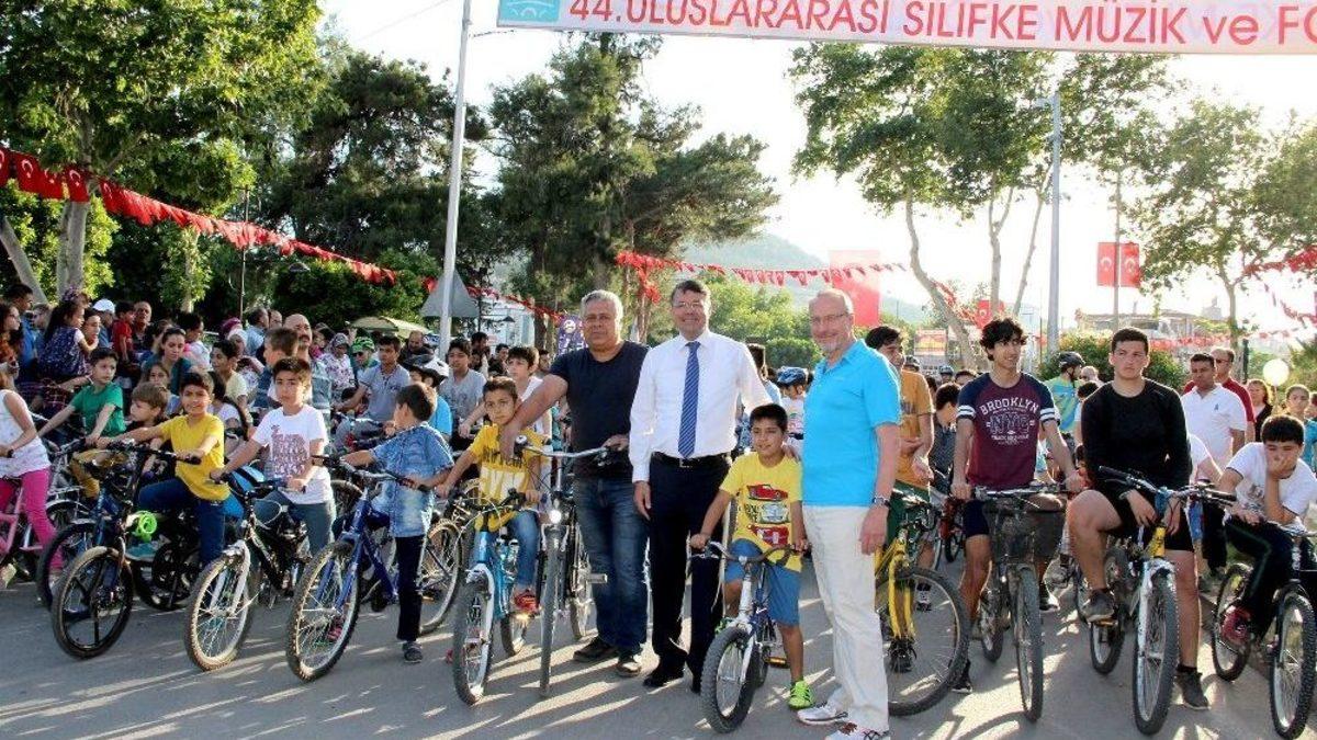 Mersin’in Silifke ilçesinde bu yıl 44.’sü kutlanmakta olan Uluslararası Müzik ve Folklor Festivali etkinlikleri kapsamında Bisiklet Kriteryumu düzenlendi. Kriteryuma genç yaşlı herkes yoğun bir katılım gerçekleştirdi.Bisiklet kriteryumuna yaklaşık 300 yarışmacı katıldı. Silifke Belediye Başkanı Dr. Mustafa Turgut’un Atatürk Anıt Meydanı’ndan start vererek başlattığı kriteryum, Hastane ışıkları ve Kaymakamlık Binası önünden devam edip yine başladığı noktada son buldu. Güneş Saatçiliğin balon dağıttığı yarışmalarda, halka ücretsiz olarak dondurma ikramı da yapıldı.Bisiklet kriteryumun da dereceye giren sporculara 44. yıl anısına 44 çeşit hediye verildi. Geçtiğimiz yıl yaklaşık 200 kişinin katılımıyla düzenlenen bisiklet kriteryumuna bu yıl daha fazla bir katılım gerçekleşti.Bisiklet kriteryumuna katılan tüm vatandaşlara teşekkür eden Belediye Başkanı Dr. Mustafa Turgut, "44 yıldır kutlanan bu festivaller sayesinde Silifke, adını Türkiye’ye olduğu gibi tüm dünyaya duyurmuştur. Silifke halkı, geçmişine sahip çıkarak bu değerlerini korumuştur. Akdeniz’in incisi olan bu güzel ilçe, tarihi dokusu ve tabii güzellikleriyle yerli ve yabancı turistlerin dikkatini çekmektedir. Festival dolayısıyla gelen konuklarımız, ilçemizin tanıtımına büyük katkı sağlamaktadırlar. Her yıl farklı bir özelliğini ve zenginliği kutladığımız festivalimizi artık Uluslararası Müzik ve Folklor Festivali olarak kutlayacağız. Bu festivalimiz kapsamında düzenlediğimiz konserler, yarışmalar, turnuvalar, tiyatro etkinlikleri ve bisiklet kriteryumu gibi daha sayabileceğimiz birçok etkinlikler yer alıyor. Bunlardan bir tanesi de her yıl geleneksel hale getirdiğimiz bisiklet kriteryumu oldu. Katılım sağlayan genç yaşlı bütün vatandaşlarımıza teşekkür ediyorum” dedi.