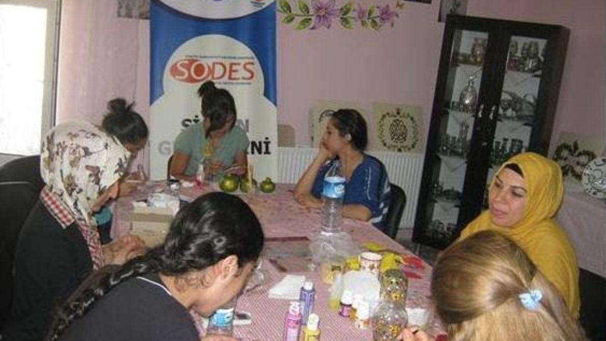Diyarbakır'ın Silvan ilçesinde SODES kapsamında yürütülen 'Silvan Geleceğini Arıyor' projesi kapsamında genç kızlar tarafından yapılan sanat eserlerinin büyük beğeni topladığı belirtildi.Silvan ilçesinde faaliyet sürdüren Farkin Aile Destek Merkezi'nde açılan el sanatları kursuna Silvanlı genç kızların yoğun ilgi gösterdiği ve el sanatları eğitiminde yapılan çalışmalarda cam boyama ve seramik biçimlendirici süslemelerin beğeni kazandığı bildirildi. El sanatı eğitmeni Güllü Bilmez, yaptıkları çalışmalarla neticesinde öğrencilere verilen el sanatları eğitimi sayesinde bir çok çarpıcı eserlerin ortaya çıktığını söyledi. Güllü Bilmez, "Kursiyerler el sanatları kursuyla paylaşmayı, hayal gücünü geliştirmeyi, sosyalleşmeyi ve boyalarla ahenk oluşturmayı öğrendiler. Yapılan el sanatlarıyla genç kızlardan oluşan kursiyerlerimiz, gelecekte aile ekonomisinde de katkı sağlayacaklardır" dedi.El sanatları kursiyeri Esra İçgil kursun hayal gücünü geliştirdiğini söyledi. İçgil, “Ben de bu kursa yazıldım ve çalışmalar yaptım. Bu kurs benim hayal gücümü geliştirdi. Silvan’da bu tür etkinliklerin yapılması bizler için çok önemlidir. Kaymakam Berkan Sönmezay’a teşekkür ediyorum. Bu kursları Silvan’da açtığı için kendisine minnettarız” diye konuştu.Kursiyer Mehtap Altın ise Silvanlı genç kızları düşünerek böyle bir kurs açanlara minnettar olduklarını söyledi. Altın, "Bu kurs sayesinde sabretmeyi, paylaşmayı öğrendik arkadaşlarımızla. Boyalarla nasıl güzel ürünler ortaya çıkardığımızı ve hayal gücümüzü geliştirdiğimizi gördük. Ortamın sıcaklığı ve öğretmenlerimizin güler yüzleri bizi daha çok kursa bağladı. Bu kurslar sayesinde yapmış olduğumuz el sanatları ürünlerini belirli pazarlara sunularak, gelecekte aile ekonomisine de destek olacağız. Projenin öncülerine çok teşekkür ediyoruz” şeklinde konuştu.