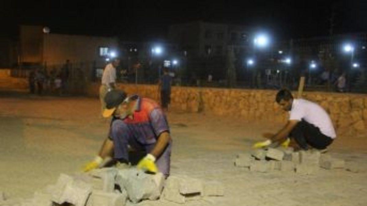 Diyarbakır’ın Silvan İlçe Belediyesi Ramazan ayı nedeniyle gece mesaisi uygulaması başlattı. İlçedeki kenar mahallelere döşenecek olan parke taşları Ramazan ayı nedeniyle gece döşeniyor.Silvan Belediyesi Fen İşleri Müdürlüğü, Ramazan ayı vesilesiyle ve havaların sıcak olmasından dolayı kilitli parke taşı çalışmalarını gece serinliğinde yapıyor. Gündüz belediye hizmet binasında resmi işler yürütülürken, fen, çöp ve diğer çalışmalar akşam saatlerinde yapılıyor. Gündüz oruç tutan Fen İşleri Müdürlüğü ekipleri sahur vaktine kadar kilitli parke taşı döşemesi gerçekleştiriyor. Yapılan çalışmalar kapsamında ilçe merkezine bağlı Bağlar Mahallesi’nin 816, 819 ve 823’üncü sokakları yanı sıra Gül Caddesi üzerinde kilitli parke taşı döşemesi yapıldı.Çalışmalardan memnun olduklarını belirten personel ise iftardan sonra başladıkları çalışmalarını sahur vaktine kadar sürdürdüklerini söyledi.