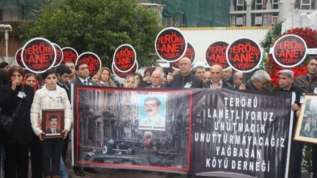 Şişhane’de Neva Şalom Sinagogu’na yönelik düzenlenen bombalı saldırıda hayatını kaybedenler için anma töreni düzenlendi. Bombalı saldırıda gözlerini kaybeden bir vatandaş, cebinden çıkardığı yumurtayı sinagoga fırlatarak tepki gösterdi.Şişhane’de 15 Kasım 2003’te Neva Şalom Sinagogu’na yönelik düzenlenen bombalı saldırıda hayatını kaybedenler anısına bir tören düzenlendi. Patlamada hayatını kaybeden Murat Şahin’in başkanlığını yaptığı Yağbasan Köylüleri Derneği öncülüğünde düzenlenen anmaya, saldırıda hayatını kaybedenlerin yakınları, CHP İstanbul Milletvekili Mahmut Tanal ve Sezgin Tanrıkulu katıldı. Tören, saldırının gerçekleştirildiği saat 09. 23’te saygı duruşu ve İstiklal Marşı’nın okunması ile başladı. Saldırıda hayatını kaybeden Yağbasan Köylüleri Derneği Başkanı Murat Şahin’in kızı babasının fotoğrafını bir an olsun elinden bırakmadı. Şahin’in eşi Fatma Şahin’in ise uzun süre gözyaşı döktüğü görüldü.Mahmut Talan törende konuşma yapacağı sırada patlamada gözlerini kaybeden Aydın Kara, tepki göstererek, “Sinagog yüzünden gözlerimi kaybettim. Eşimi kaybettim” diye bağırmaya başladı. Bu sırada konuşmasını kesen Talan, Kara’yı yanına çağırarak “Birlikte bağıralım. Terörü birlikte lanetleyelim” dedi.Kara, arkadaşları tarafından sakinleştirilmeye çalışıldı. Sinagoga doğru yürüyüşe geçildiği sırada kendisini kaybeden Kara, hahambaşına seslenerek cebinden çıkardığı yumurtayı sinagoga fırlattı. Kara, daha sonra alandan uzaklaştırıldı. Sinagoga doğru yürüyüşe geçen grup ise Şahin’in hayatını kaybettiği iş yerinin önüne karanfil bıraktı.Grup daha sonra mezarlık ziyaretinde bulunmak üzere sessizce dağıldı.