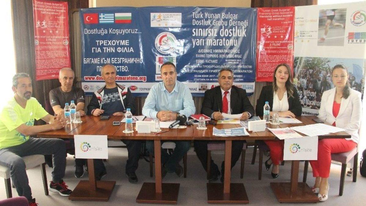 Edirne’de düzenlenen Sınırsız Dostluk Yarı Maratonu’nun üçüncüsü, 4 Haziran 2017’de yapılacak.Dernek yönetimi bir apart otelde gerçekleştirdiği basın toplantısında, Sınırsız Dostluk Yarı Maratonu’na katılacak sporcuların başvurularının başladığı duyurdu. Maratonun dünya standardında büyük bir etkinlik olduğunu dile getiren Türk Yunan Bulgar Dostluk Grubu Derneği (TUYUB) Başkanı Haluk Kaya, “Üçüncüsünü yapacağımız bu maraton için sporcu kayıtlarımız açılmış olup www.dostlukyarimaratonu.org adlı yeni site üzerinden yapılmaktadır. Yapılış bazında dünyada bir ilk olan bu maratona yalnız Türk, Yunan ve Bulgar atletleri ile sınırlı kalmaktadır. Bu gün burada, Trakya’da bu işe gönül vermiş dostlarımız ile beraber bu işin startını beraberce verelim istedik. Biz yarışı organize ediyoruz. Sevgili sporcu dostlarımız koşarak, terleriyle, emekleriyle, bizlere destek olmaktadırlar. Basın mensuplarımız bizlerin ulusal ve uluslar arası arenada duyuru ve tanıtımımızı yapmaktadırlar. Siz güzel bir organizasyonu yaparsanız başarının gelmesi kaçınılmaz olur. Türkiye Atletizm Federasyonu’nun 2017 yıllık faaliyet takvimine dahil ile ulusal boyuttaki destekleri sayesinde bu yıl maratonumuz, Avrupa Atletizm Federasyonunun takvimine girmiş, uluslararası boyuta gelerek, tüm dünyaya açılmıştır. TRT tarafından canlı olarak yarışın yayınlanması ile Edirnemizde, Trakyamızda ve Türkiyemizde 3 yıldızlı sertifika alan bir organizasyon olma özelliği ile bizlerin ufkunu açmıştır” dedi“Seneye 2 bin sporcu”Herkesin bu etkinliğin bir ucundan tutması gerektiğini belirten Önder Akdağ, “Sınırsız dostluk maratonu, Dünya Atletizm Federasyonu listesinde olan Edirne’de olan dünya ölçeğinde bir etkinlik. Bu sene üçüncüsünü yapıyoruz. Geldiğimiz nokta ile önemli bir başarıya imza atmış bulunuyoruz. Dün itibari ile de Avrupa Atletizm Federasyonu 3 yıldızla bu etkinliği ödüllendirerek Türkiye’de alanında tek yarı maraton ilan etti. Bu etkinliğe ilk başladığımızda 300 sporcu, ikincisi de 750, bu sene bin 500 sporcu ile sınırlıyoruz. Önümüzdeki yıl bir tık ile 2 bin sporcu ile yaparak her geçen gün büyüyen dünya ölçeğinde Edirne’de yapılan güzel bir etkinliğe dönüştüreceğiz ve bu bayrağı hep beraber taşıyacağız” diye konuştu.
