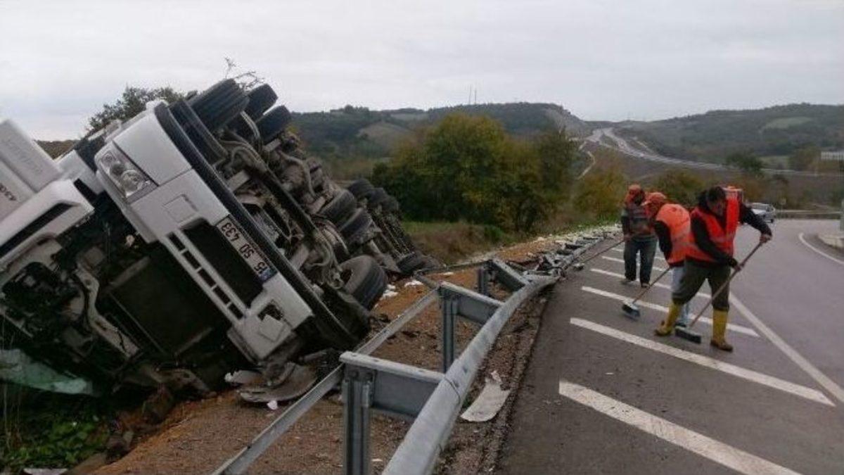 Sinop’ta TIR’ın devrilmesi sonucu meydana gelen trafik kazasında 1 kişi yaralandı.Edinilen bilgilere göre, Sinop Kabalı Boyabat Viyadüğü’nde meydana gelen kazada, Abdurrahman Özay yönetimindeki 15 SD 433 plakalı TIR direksiyon hakimiyetinin kaybedilmesi sonucu yoldan çıkarak yan yattı. TIR’da yüklü olan meşrubat kasaları yola savruldu. Kazada yaralanan sürücü, Sinop Atatürk Devlet Hastanesine kaldırıldı.Kazayla ilgili soruşturma başlatıldı.