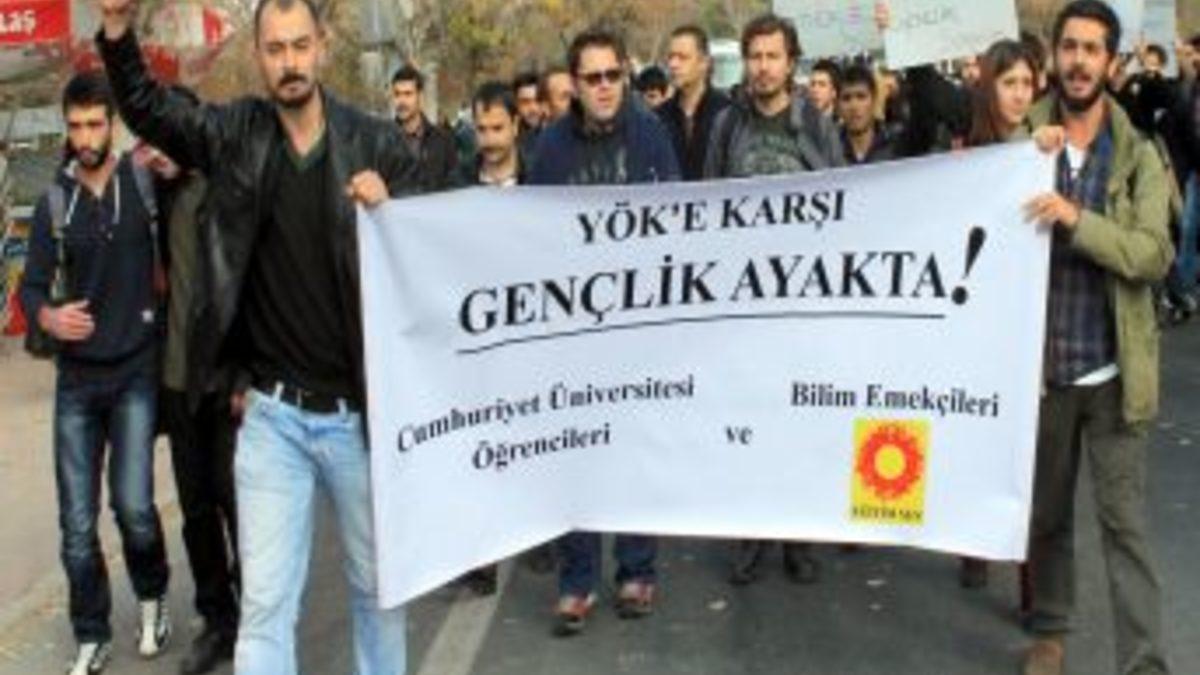 Sivas’ta üniversite öğrencileri Yüksek Öğretim Kurumu(YÖK)’nu protesto etti. YÖK’ün kuruluş tarihi olan 6 Kasım nedeniyle Cumhuriyet Üniversitesi Merkezi Kafeterya önünde toplanan bir grup öğrenci, YÖK’ün tamamıyla kaldırılmasını istedi.Merkezi Kafeterya’dan sloganlar atarak yürüyüşe geçen grup, daha sonra Rektörlük önüne geldi. Burada öğrenciler adına basın açıklamasını okuyan Cengiz Kocaoğlu, YÖK protestosu için toplandıklarını belirterek, 80 darbesinin ürünü olan YÖK’ün ülkenin aydınlık yüzü olan üniversiteleri piyasanın ihtiyaçlarına göre şekillendirerek geleceklerini çalmaya çalışmakla suçladı. Kurulduğu günden bu yana YÖK’ün 790 öğretim görevlisi ve 50 bin öğrenciyi üniversitelerden uzaklaştırdığını savunan Kocaoğlu, bu şekilde yasakların ve baskıların kurumu haline geldiğini öne sürdü. Kocaoğlu şöyle devam etti: “Hükümetin 12 Eylül politikalarıyla mücadele ettiğini ve YÖK’ü kaldıracağını vaat etmesine rağmen yeni düzenlemeye göre YÖK’ün önüne Türkiye kelimesini ekleyerek öğretim görevlileri ve öğrencilerin hak gasplarını gizlemektir.” Öğrenciler daha sonra Rektörlük binası yanındaki bahçeye geçerek burada YÖK ve üniversiteler hakkında görüşlerini beyan etti.