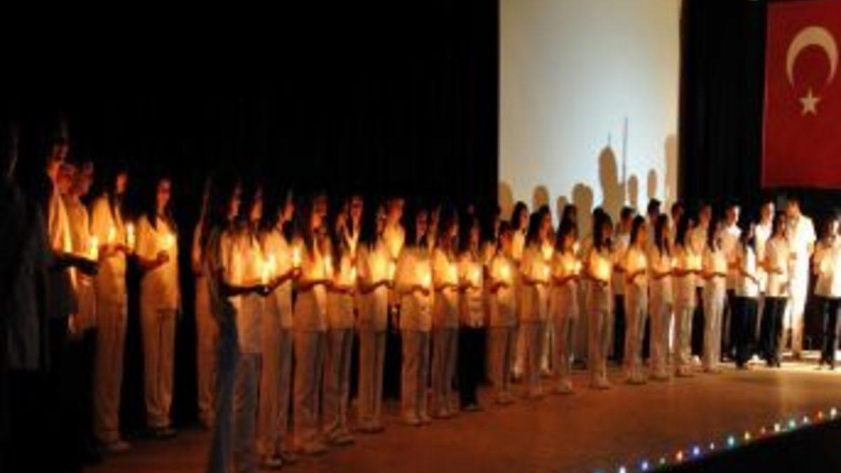 Sonrasında mezun öğrenciler usta öğreticilerin ellerinden aldıkları mumlarla seramoniye geçtiler. Bayrak ve filama teslim töreni akabinde diploma töreni düzenlendi. Protokol mensupları tarafından 44 mezun öğrenciye diplomaların takdim edildi. Tören, geleceğin sağlıkçılarının meslek yeminlerini etmelerinin ardından sonra erdi.