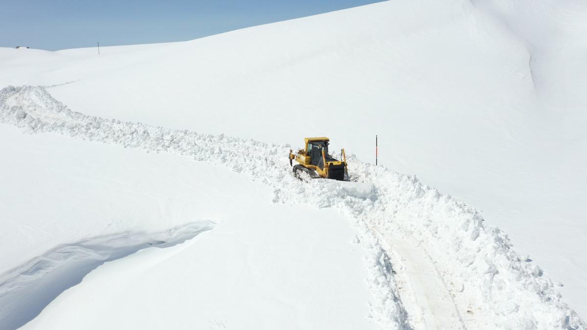 Eleşkirt ilçesinin yüksek rakımlı bölgelerinde yoğun karla mücadele eden ekiplerin çalışması dronla görüntülendi.