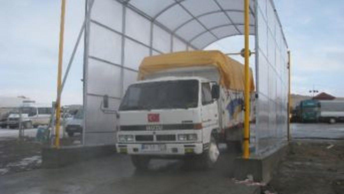 Yozgat’ın Sorgun ilçesinde hayvan pazarına kurbanlık havan getiren araçlar dezenfekte edilerek pazara alınıyor.