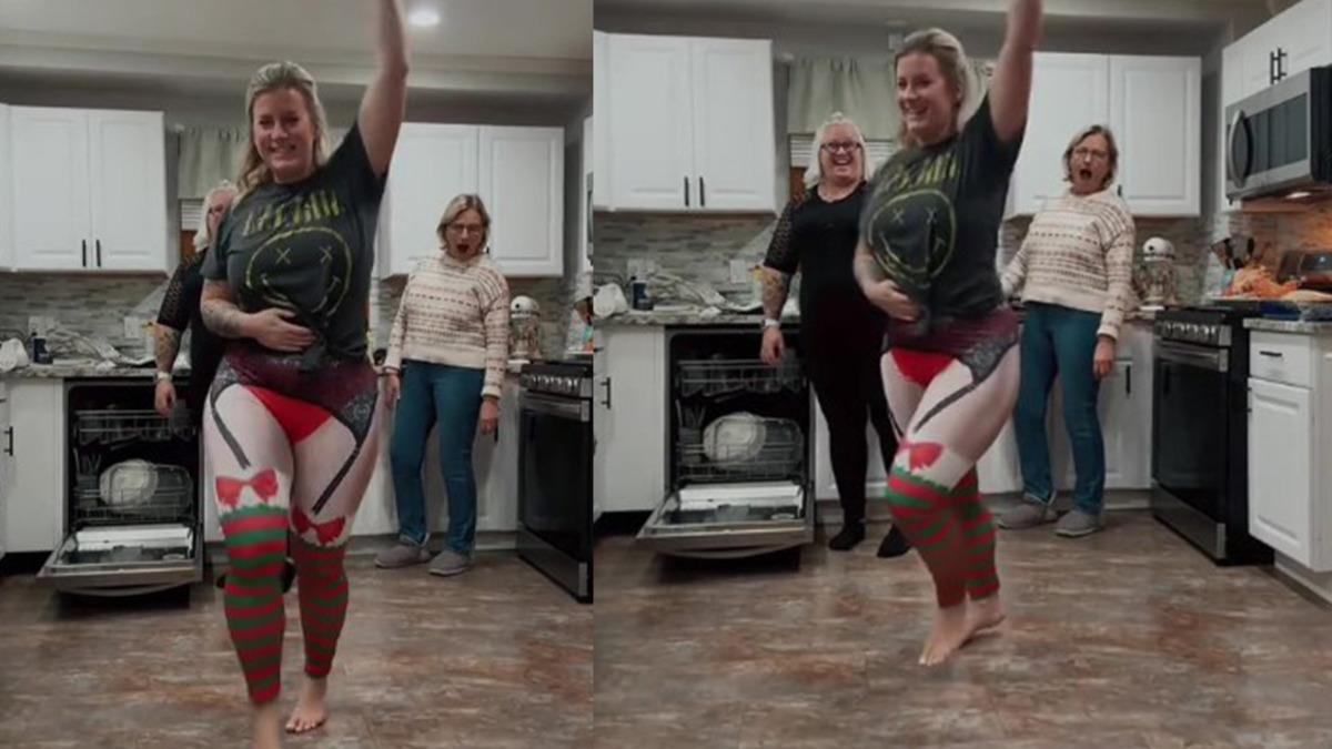 TikTok'ta "mamabear.brand" kullanıcı adıyla paylaşım yapan Laura Dodd isimli bir kadın Noel taytını ailesini tanıtmak istedi ve o anları da cep telefonuyla çekmeyi ihmal etmedi. Fenomen isim kamera karşısında kırmızı bir iç çamaşırı baskılı taytıyla dans ederken aile üyelerinin ağzı açık kaldı. O anlar sosyal medyada gündem yaratmayı başardı.