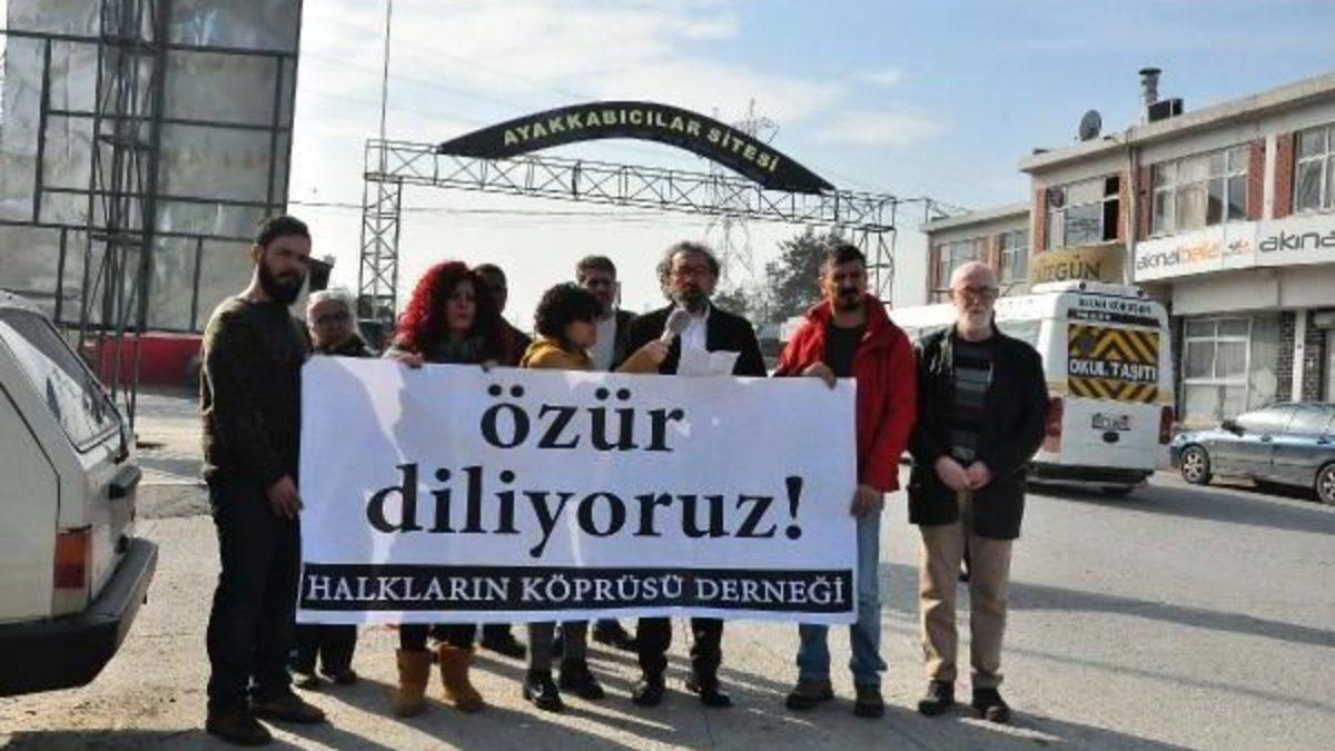 Halkların Köprüsü Derneği'de bugün olayla ilgili basın açıklaması yaptı. Olayın gerçekleştiği Işıkkent Ayakkabıcılar Sitesi'nde biraraya gelen dernek üyeleri 'Özür diliyoruz' yazılı pankart açtı. Grup adına açıklamayı Dernek Başkanı Cem Terzi yaptı. Terzi, "2 gün önce Suriyeli bir işçinin karnına diziyle bastırdığı fotoğrafı, altına 'Türk'ün Suriyeli'den intikamı' notuyla sosyal medya hesabından paylaşan ve tepkiler sonrası olayın sanıldığı gibi şiddet içermediğini, şakalaşmadan ibaret olduğunu söyleyen kişiye 'Şakasına bile tahammül etmiyoruz' demek için buradayız" diye konuştu.