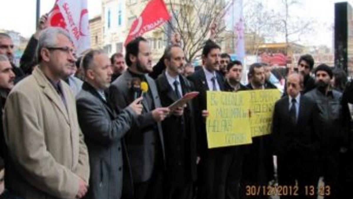 Osmangazi İlçe Başkan Yardımcısı İbrahim Güleç, yaptığı basın açıklamasında, “Bugün buradan, Bursa’mızın kalbi mesabesindeki Ulucami civarından, yüreğimiz yanar vaziyette bir gerçeği haykırıyoruz. Müslümanlar da, özellikle Hıristiyan batının dayattığı değerleri benimsemiş görünüyor. Önceleri sadece bir eğlence vasıtası olarak masum gösterilen yıl başı, giderek tam bir Hıristiyan adetlerinin uygulandığı bir gece oldu. Batı emperyalizminin dünyaya dayattığı, kapitalist çarkın dişlilerinden biri olan ve tüketim çılgınlığı için en büyük fırsat bilinen yıl başını günler öncesinden kutlama hazırlıklarına başlayan milletimiz, çam süslemelerinden Noel baba oyuncaklarına, hediye çoraplarından şampanya sepetlerine kadar bin bir türlü özenti adetleri iyice kanıksamış durumda" dedi.