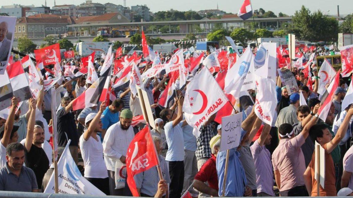 Saadet Partisi'nin (SP), Mısır’daki darbeyi protesto etmek için Kazlıçeşme Meydanı’nda düzenlediği miting başladı. Meydanı dolduran yaklaşık 2 bin kişi Mısır ve Türk bayraklarını sallayarak darbeyi protesto ediyor. Kalabalığın, iftarı birlikte açacağı ve akşam namazını meydanda kılacağı öğrenildi.
