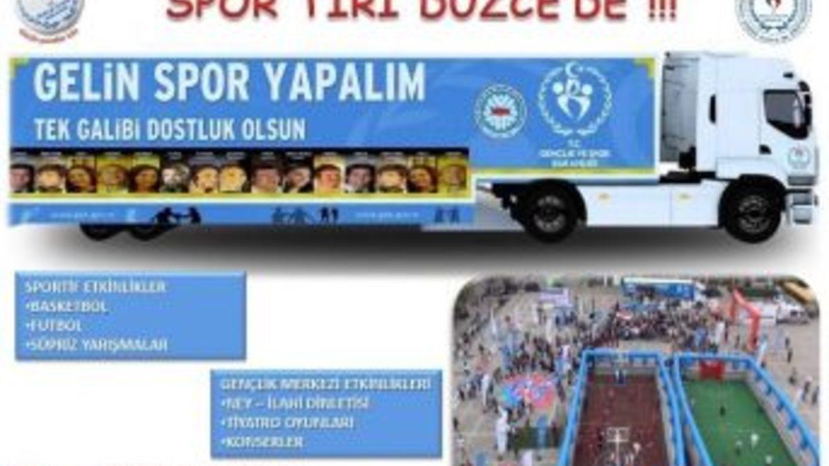 “Gelin Spor Yapalım Tek Galibi Dostluk Olsun“ sloganı ile yola çıkan Spor Tırı, 22 Temmuz 2014 Salı günü saat 21.00’da Düzce’de olacak.Gençlik ve Spor Bakanlığı ve Türkiye Amatör Spor Kulüpleri Konfederasyonu işbirliğiyle gerçekleştirilecek olan "Gelin Spor Yapalım Tek Galibi Dostluk Olsun" projesi kapsamında Spor Tırı 22 Temmuz 2014 Salı günü Düzce’ye geliyor.Spor Tırı 22 Temmuz 2014 Cuma günü iftardan sonra saat 21.00’de Düzce Anıt meydanda olacak. Basketbol, futbol, tırmanma duvarı, zıpzıp ve kaykay ve şişme oyun parkurları ile birçok etkinliğin yer alacağı Spor Tır’ında çeşitli gösteriler, eğlenceli oyunlar ve görsellerin hazırlanacak.