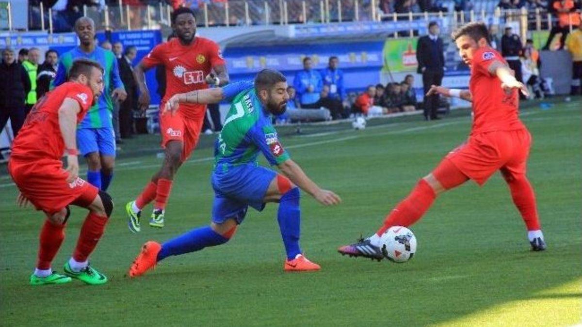 Spor Toto Süper Lig'in 26. haftasında Çaykur Rizespor, kendi evinde Eskişehirspor ile golsüz berabere kaldı.MAÇTAN DAKİKALAR (İKİNCİ YARI)46. dakikada Cernat'ın kullandığı köşe vuruşunda ceza sahası içinde topa iyi yükselen Viera’nın kafa vuruşunda meşin yuvarlak auta gitti.77. dakikada Bienvenu’nun pasında ceza sahası ön çizgisi üzerinde topla buluşan Aytaç’ın vuruşunda meşin yuvarlak direkten döndü.90+2. dakikada Deniz'in topla beraber kale sahası içine girerek kaleci ile karşı karşıya vuruşunda top kaleci Boffin'de kaldı.STAT: Yeni Rize ŞehirHAKEMLER: Fırat Aydınus xx, Serkan Ok xx, Aleks Taşçıoğlu xxÇAYKUR RİZESPOR: Serkan xx, Koray xx, Viera xx, Oboabona xx, Ali Adnan xxx, Sercan x (Deniz dk. 75 x), Kağan xx Ludovic xx, Tevfik xx, Kweuke xx, Cernat xx (Ümit dk. 61 x)YEDEKLER: Necati, Sezer, Orhan, Cumali, AykutTEKNİK DİREKTÖR: Uğur TütünekerESKİŞEHİRSPOR: Boffin xx, Akaminko xx, Servet xx, Sezgin xx, Serol xx, Aytaç xx, Lawal xx, Kamara xx, Torres xx (Erkan dk. 63 x), Necati xx (Bienvenu dk. 76 x), Erman xx (Hurriyet dk. 85 x)YEDEKLER: Kayacan, Hasan, Özgür, OnurTEKNİK DİREKTÖR: Ertuğrul SağlamKIRMIZI KART: Akaminko (dk. 83) (Eskişehirspor)SARI KARTLAR: Koray, Oboabona (Çaykur Rizespor), Lawal, Aytaç, Servet (Eskişehirspor)