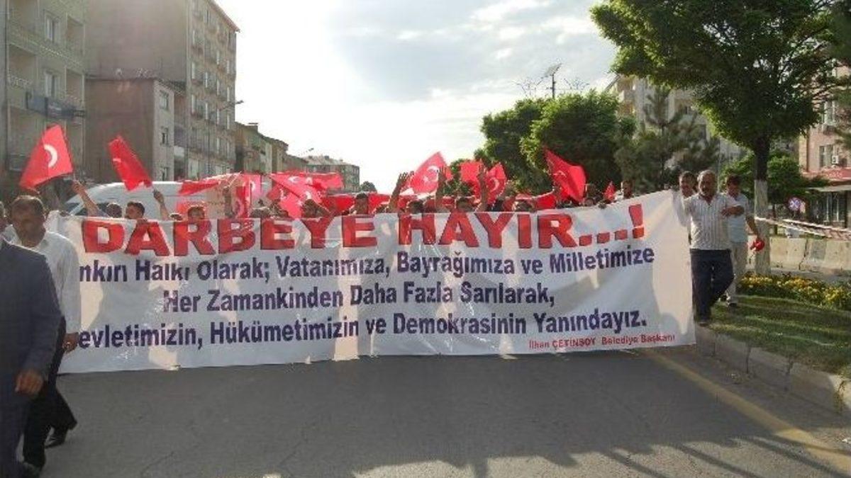 Bitlis’in Güroymak ilçesinde faaliyet gösteren sivil toplum kuruluşlarının temsilcileri, darbe girişimine karşı ortak basın açıklaması yaptı.Güroymak’taki binlerce vatandaş, Fethullahçı Terör Örgütü/Paralel Devlet Yapılanması (FETÖ/PDY) üyesi askerler tarafından yapılan darbe girişimine tepki göstermek için ‘demokrasi nöbeti’ tutmaya devam ediyor.‘Millet burada darbeciler nerede’, ‘vur vur inlesin Pensilvanya dinlesin, Mektebinde Şahadet olan bir milletin kaderinde esaret yoktur’ dövizlerinin açıldığı alanda, sivil toplum kuruluşlarının imzasının yer aldığı ortak basın metni okundu.Güroymak Kaymakamı Muharrem Eligül de toplanan gruba hitap ederek, “Müslümanlıkla yoğrulan bu yurdu, imansız bırakma Allah’ım. Allah hepinizden razı olsun. Buraya tüm partilileri davet ediyorum. Çünkü bu olay hükümetimize tek yapılan bir darbe değildir. Meclisi bombaladıkları gibi mecliste bütün siyasi partiler var, millete yapılan darbedir. Bütün Norşin halkımızı bu darbeye karşı tek yürek olmaya davet ediyorum” dedi.Darbe girişimine tepki amacıyla bayraklarla Güroymak Hükümet Konağı karşısında toplanan kalabalık grup, sloganlar atarak darbe girişimine tepki gösterdi. Toplanan vatandaşlar, dev Türk bayrağını açarak ilçenin çarşı merkezinde yürüyüş yaparak darbe girişimini kınadılar.STK’lar adına basın bildirisini okuyan Güroymak Memur-Sen İlçe Temsilcisi Ali Erkoç, darbe girişimini kınayarak, “Türkiye’de 15 Temmuz akşamı görüldü ki karanlık güçler halkın iradesine el koymak istediler. 15 Temmuz 2016 tarihinde yaşanan darbe girişimi hepimizin malumudur. Bu çılgınlığa teşebbüs edenleri elbette bizde unutmayacağız, tarihte unutmayacak ve dünya var oldukça vicdanlarda yargılanacaktır. Bu darbe teşebbüsünü lanetliyor ve şiddetle kınıyoruz” dedi.