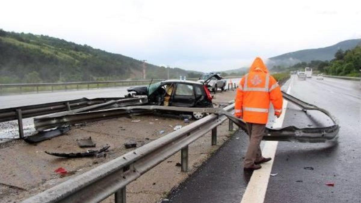 Taner BAYAR/ BOLU, Kaza, saat 18.30 sıralarında, TEM Otoyolu Köroğlu Park mevkiinde meydana geldi. Sakarya'ya giden İhsan Sarı idaresindeki 54 DE 726 plakalı otomobil, yağmur nedeniyle yolda biriken su birikintisine girerek kontrolden çıktı. Sürücüsünün direksiyon hakimiyetini kaybettiği otomobil bariyerlere çarptı. Kazayı görerek duranlar sürücünün yardıma koşarken, hasar gören aracın kapılarının açılmaması üzerine itfaiyeden yardım istenildi. Kazayı hafif sıyrıklarla atlatan İhsan Sarı itfaiye ekiplerinin kapıları kırarak açması sonucu araçtan çıkarıldı. İhsan Sarı sağlık ekibinin ilk müdahalesinin ardından İzzet Baysal Eğitim ve Araştırma Hastanesi Köroğlu Ünitesi'ne kaldırılarak tedavi altına alındı. Kazayla ilgili soruşturma başlatıldı.