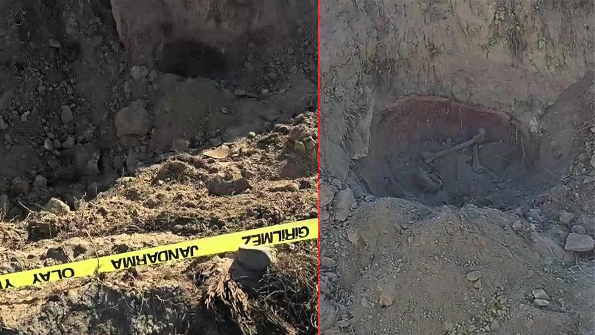 Küpün içerisinde bir iskelet olduğunu gören ekiplerin ihbarı üzerine bölge jandarma ekipleri tarafından güvenlik çemberine alındı.