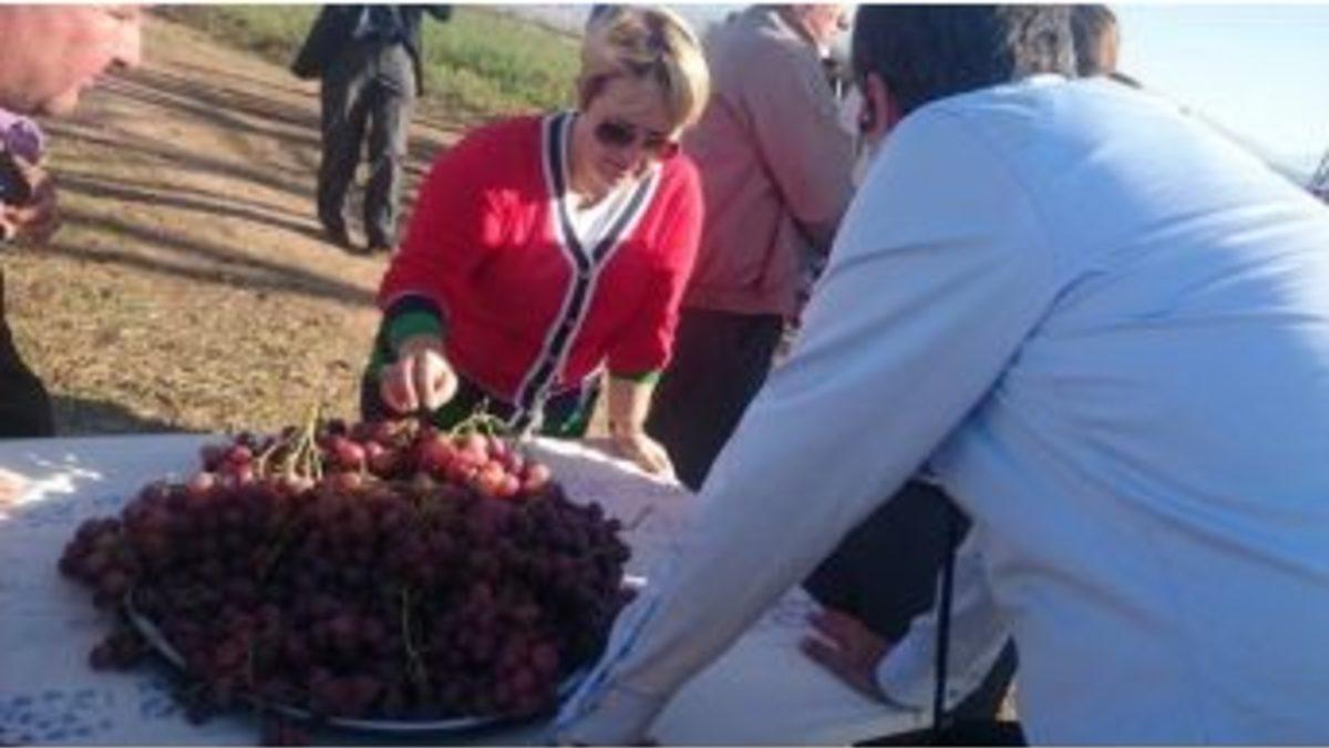 AK Parti Manisa Kadın Kolları Yönetim Kurulu Üyesi ve Ziraat Mühendisi Şükriye Burak, çitçilere yaklaşan...