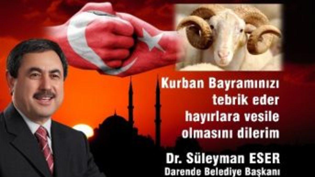 Darende Belediye Başkanı Dr. Süleyman Eser, Kurban Bayramı nedeniyle bir mesaj yayınladı. Bayramı herkesin gönlünce...