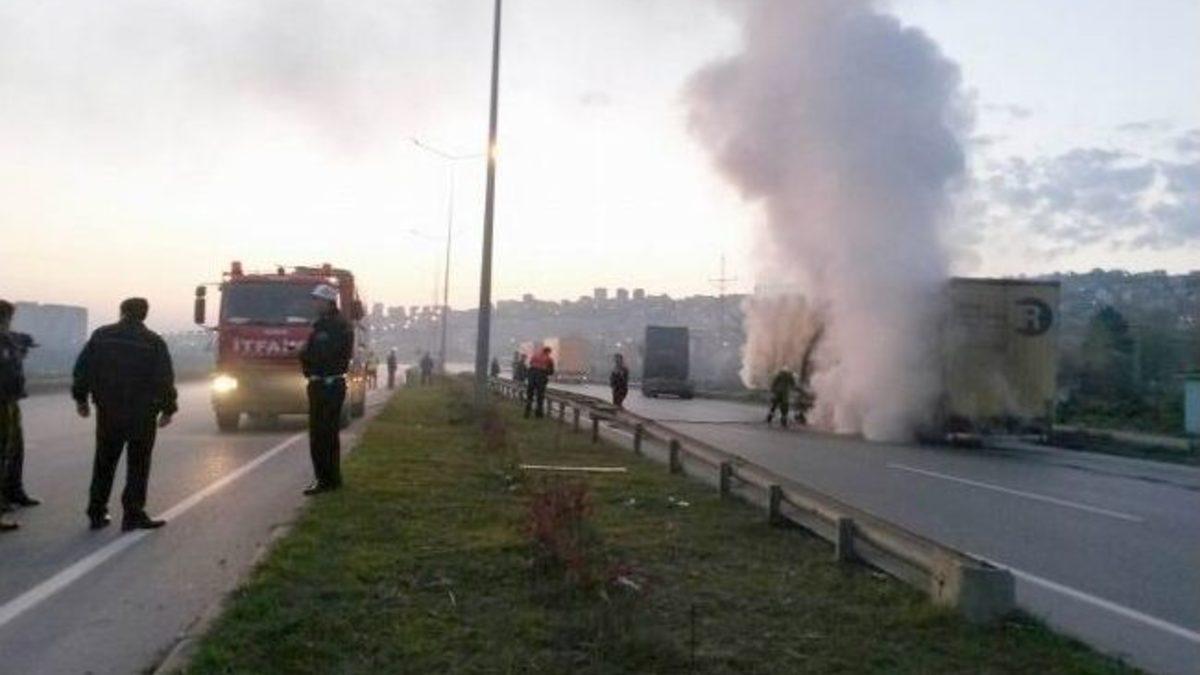 SAMSUN (İHA) – Samsun'un Canik ilçesinde sunta taşıyan TIR'ın dorsesinde çıkan yangın itfaiye ekipleri tarafından söndürüldü.Edinilen bilgiye göre, çevreyolu 200 Evler karşısında, Ankara'dan yüklediği suntayı Gürcistan'a götüren Mamıa Mıkeladze (54) idaresindeki LLS-965 çekici SZ-768 dorse plakalı TIR'ın dorsenin lastikleri tutuştu. Alevler biranda dorseyi sardı. Gürcistan uyruklu sürücü çekiciyi dorseden ayırarak yanmaktan kurtardı. Samsun Büyükşehir Belediyesi İtfaiye Daire Başkanlığı ekipleri yangına kısa sürede müdahale ederek söndürdü. Yangında büyük çapta maddi hasar meydana geldi.