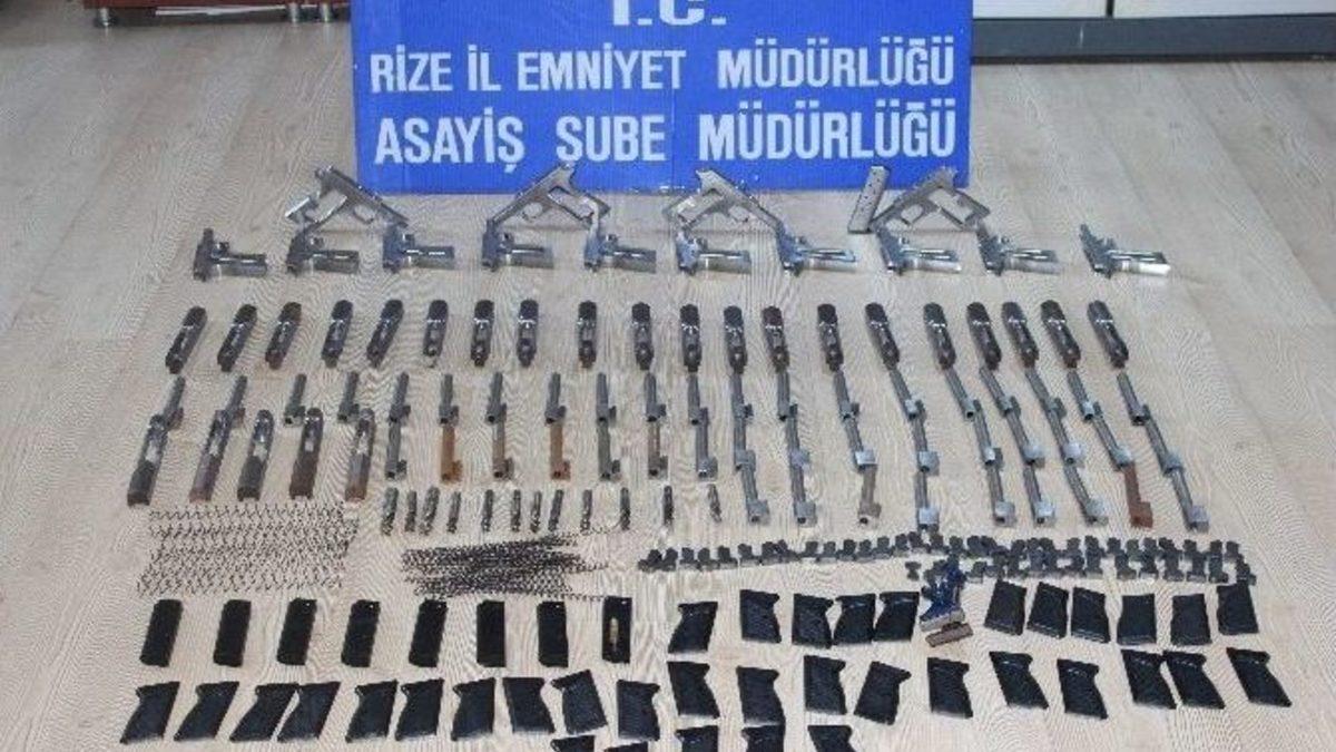 Rize’nin Pazar ilçesinde polis tarafından durdurulan araçta, montaja hazır 20’ye yakın tabanca parçası çıktı.Rize İl Emniyet Müdürlüğü asayiş ekipleri, Pazar ilçesi Tır Parkı’nda şüpheli gördükleri bir araçta arama yaptı. Yapılan aramada araçta; 20 adet tabanca sürgüsü, 20 adet tabanca namlusu, 14 adet tabanca gövdesi, 12 adet tabanca namlu açma ucu, 30 adet tabanca plastik kabza kapağı, 8 adet tabanca şarjörü, 8 adet tabanca şarjör yayı, 16 adet tabanca şarjör alt parçası ve 8 adet metal tabanca gövdesi bulundu. Aracın çeşitli yerlerinde gizlenmiş parçalara el konuldu. Olay yerinde gözaltına alınan T.A., M.A., S.A. ve H.T.A.’nın ifadeleri doğrultusunda, Ardeşen ilçesi Kavaklıdere Mahallesi’nde bir silah imalathanesi de bulundu. İmalathane sahipleri N.Ö. ve A.Ö. de gözaltına alındı. Pazar Adliyesi Cumhuriyet Başsavcılığı’na sevk edilen zanlılardan T.A., H.T.A. ve A.Ö. adli kontrol şartıyla serbest bırakılırken, S.A. ve N.Ö. ise tutuklanarak cezaevine gönderildi.
