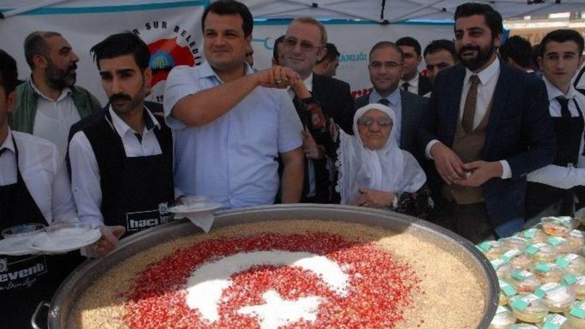 Diyarbakır’ın Sur ilçesinde 5 bin kişiye, Muharrem ayı dolayısıyla Türk bayrağı ile süslenmiş aşure dağıtıldı.Sur ilçesinde tarihi Ulu Cami önünde cuma namazı çıkışı düzenlenen aşure dağıtım etkinliğine, Sur Belediyesi’ne kayyum olarak atanan Diyarbakır Vali Yardımcısı Bilal Özkan, Sur Kaymakamı Memduh Tuna, kamu kurum müdürleri ile çok sayıda vatandaş katıldı. Türk bayrağı ile süslenmiş aşurenin dağıtımı öncesi bir konuşma yapan Sur Belediye Başkanı Bilal Özkan, "Aşure dağıtmak Muharrem ayı geleneğidir. Kerbela’da hayatını kaybedenlerin anısına bu aşure etkinliğini Sur kaymakamlığımız ile birlikte organize ettik. Birliğimizin, beraberliğimizin artmasına vesile olması için bu etkinliği düzenledik. Ben tekrar Kerbela şehitlerimizi rahmetle anıyorum. Buraya gelen halkımıza da teşekkür ediyorum. Allah kabul etsin" dedi.Konuşmaların ardından hazırlanan aşureler vatandaşlara dağıtıldı.