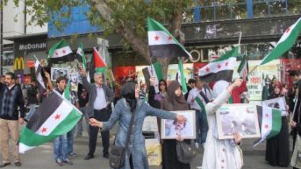 Suriye Devlet Başkanı Beşar Esad ve yönetimini protesto eden bir grup Suriye vatandaşına Türkiye Gençlik Birliği (TGB) üyesi bir grup tepki gösterdi. İki grubun sloganlı atışmasını çevrede bulunan vatandaşlar da ilgi gösterdi.