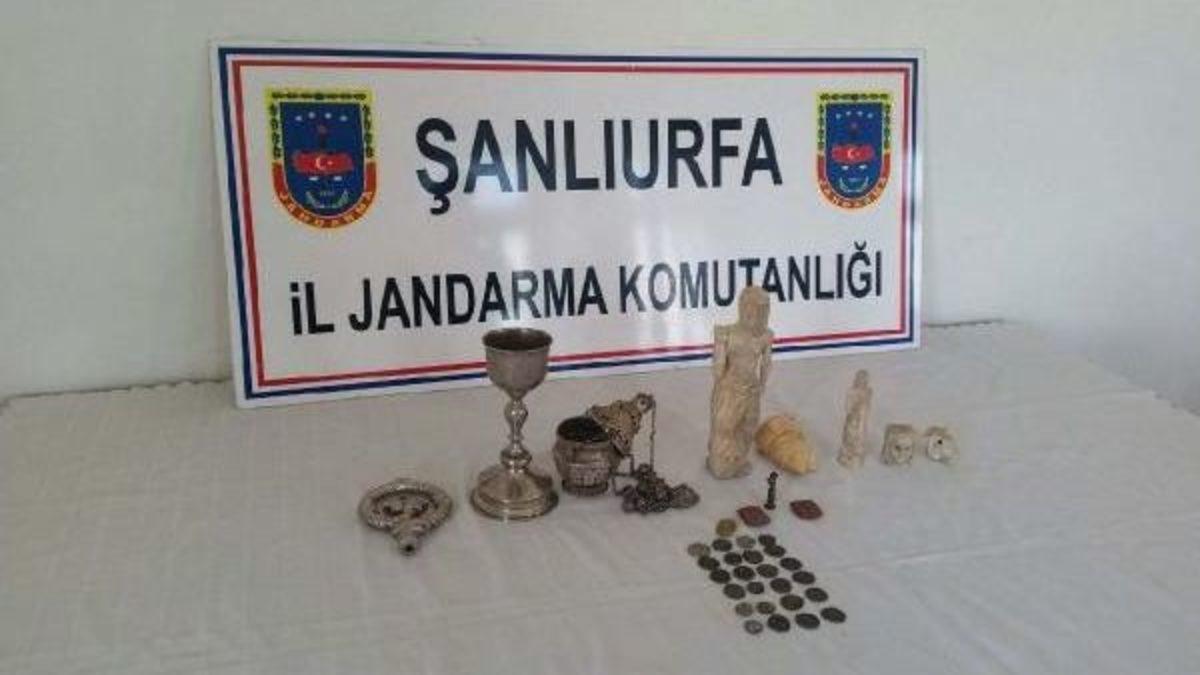 AKÇAKALE İl Jandarma Komutanlığı ekipleri, Suriyeliler'in ülkelerinden Türkiye’ye tarihi eser getirdikleri bilgisi üzerine harekete geçti. Ekipler, Fevziçakmak Mahallesi’ndeki bir eve yaptıkları baskında Suriye'den getirildiği saptanan kupa, hayvan figürleri, şamdam, sikke ve erkek heykellerinden oluşan 36 parça tarihi eser ele geçirdi. Eserlere el koyan ekipler, evde barınan Suriye uyruklu M.E.H., H.E.F., A.E.A., H.E. F., ve A.E.A.’yı gözaltına aldı.