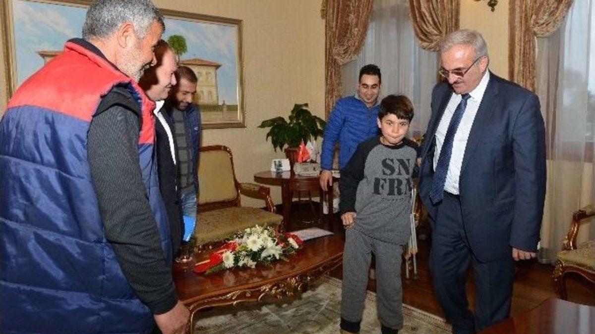 Ülkesindeki iç savaşta kaybettiği sağ bacağının yerine protez takılan Suriyeli Ali İsdfarec, Sivil Toplum Düşünce Platformu üyeleriyle Antalya Valisi Münir Karaloğlu’nu ziyaret ederek sevincini paylaştı.Vali Münir Karaloğlu, ziyarette Suriyeli Ali’ye geçmiş olsun diyerek Ali ve ailesine yardımlarda bulunan Sivil Toplum Düşünce Platformu üyelerine teşekkür etti. Ali ile bir süre sohbet eden Vali Karaloğlu, Ali’nin yarım kalan eğitimine bir an önce başlamasını istedi.Sivil Toplum Düşünce Platformu başkanı Hidayet Gültekin de Zeytinköy’de ikamet eden Suriyeli Ali’nin hikayesini anlatarak, Ali’ye Büyükşehir Belediye Başkanlığı yardımıyla protez bacak takıldığını anlattı.