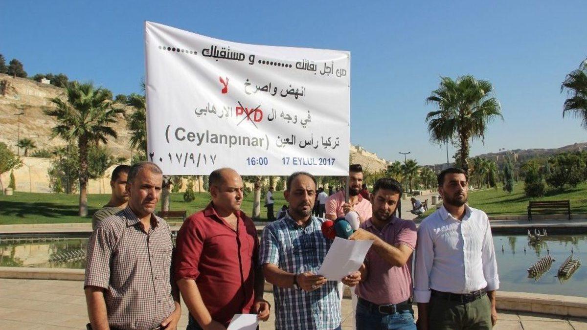 Milli Devrim ve Muhalefet Güçleri Birliği Derneği, Suriye’nin kuzeyinde terör örgütü PKK’nın uzantısı olan PYD’nin kuruluşuna öncülük ettiği “Kuzey Suriye Demokratik Federasyonu”nun yapacağı yerel seçimleri kınamak için miting düzenleyecek.Şanlıurfa Halepli Bahçe Amfi Tiyatro’da toplanan Milli Devrim ve Muhalefet Güçleri Birliği Derneği üyeleri, 17 Eylülde Ceylanpınar’da düzenleyecekleri mitingle ilgili basın açıklaması yaptı. Haksızlığa uğrayanların sesi olmak amacı ile toplandıklarını belirten grup temsilcisi Hişam El Mustafa, “PYD terör örgütünün amacı köyleri yıkmak ve yakmak. İnsanların evlerini gasp ederek göç etmeye zorluyorlar. Küçük yaşta çocukları askere alıyorlar ve diğer terör örgütleri ile iş birliği yapıyor. PYD, DEAŞ zulmünden kaçan Suriyelileri toplama kamplarına koyarak, ele geçirdikleri yerlere girmeyi yasakladı. Suriyeli kardeşlerim PYD’nin zulmüne boyun eğmeyin. Atalarımızın emanetine sahip çıkın” dedi.Hişam El Mustafa, 17 Eylülde Ceylanpınar’da düzenleyecekleri mitinge tüm Suriyelileri davet etti. Grup açıklamanın ardından dağıldı.