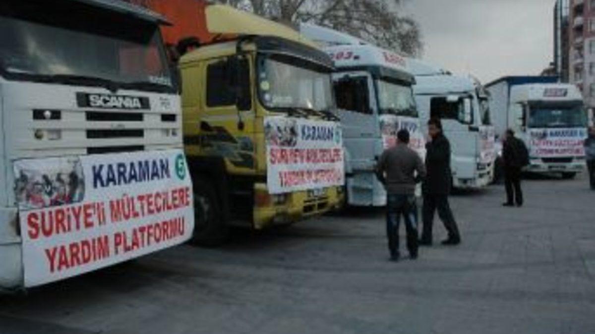 Karaman’da Sivil Toplum Kuruluşlarının oluşturduğu Yardım Platformu tarafından toplanan 5 TIR dolusu gıda dualarla Suriyeli mültecilere gönderilmek üzere Hatay’da bulunan Reyhanlı Çadır Kent'e gönderildi.