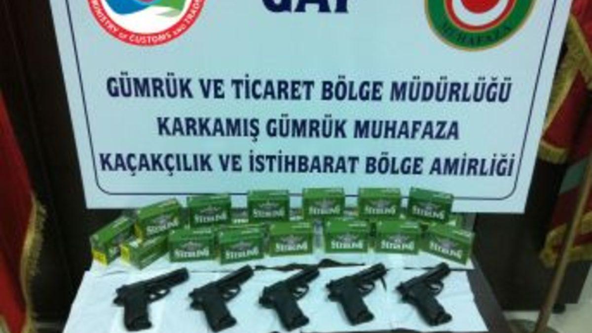 Karkamış Gümrük Muhafaza Kaçakçılık ve İstihbarat Bölge Amirliği ekipleri, Suriye uyruklu A.R’nin kullandığı 814165 Suriye plakalı aracı şüphe üzerine durdurdu. Araçta yapılan detaylı arama sonucu sürücü A.R ile birlikte N.E ve R.A isimli Suriyeli yolcuların eşyaları arasında, 1 adet havalı tüfek, 5 adet kuru sıkı tabanca, bin 700 adet av tüfeği mermisi, 135 adet cep telefonu, 75 adet cep telefonu sim kartı ve 100 adet hazır kart ele geçirildi. Kaçak eşyalara ve bu eşyaların taşınmasında kullanılan araca el konulurken, 3 zanlı, tahkikat evrakları ile birlikte Nizip Cumhuriyet Başsavcılığı’na sevk edildi. Zanlılar hakkında, 5607 sayılı Kaçakçılıkla Mücadele Kanunu ve 5809 sayılı Elektronik Haberleşme Kanunu’na muhalefetten suç duyurusunda bulunuldu.