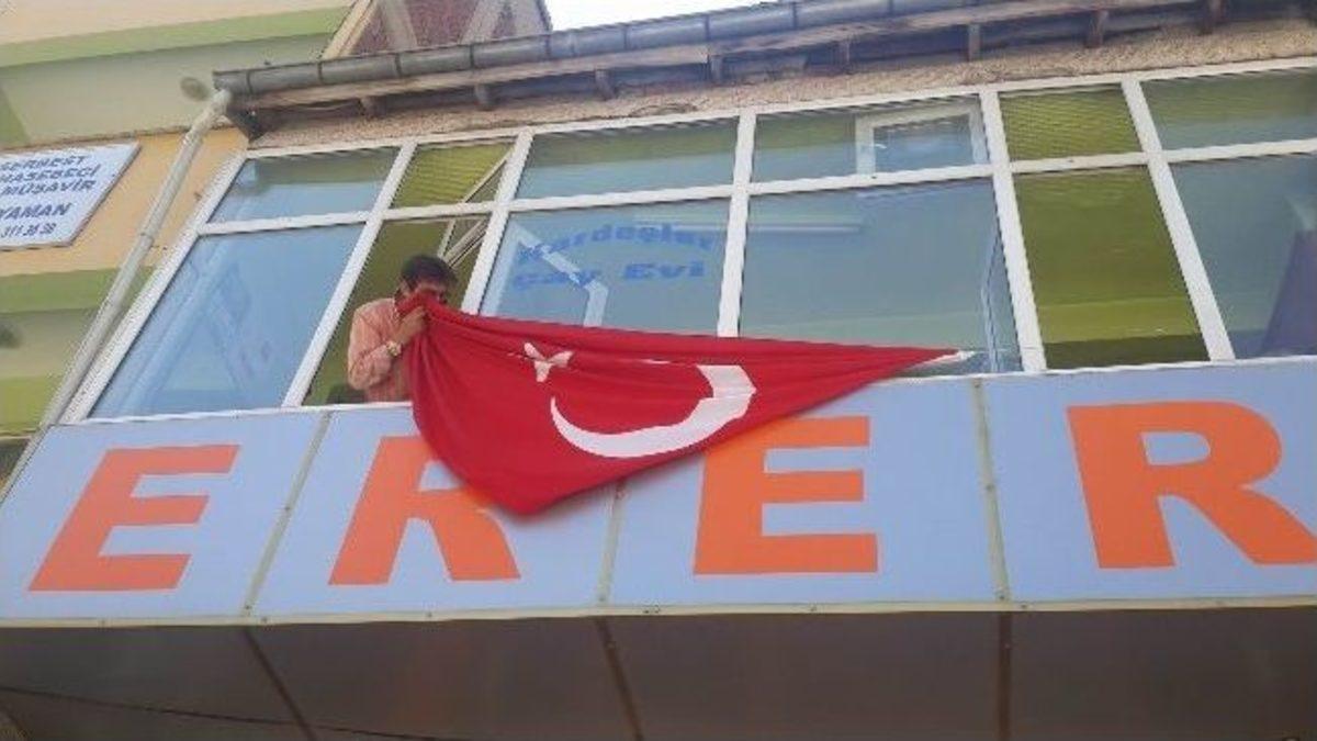 Sivas’ın Suşehri ilçesi esnafı, Diyarbakır 2'nci Hava Kuvvet Komutanlığında direkteki Türk bayrağının bir gösterici tarafından indirilmesine tepki gösterdi.Suşehri’nde esnafın birçoğu sabah saatlerinde iş yerlerine Türk bayrağı asarak terör yandaşlarını protesto etti.Nuri Sayar isimli esnaf, “Türk bayrağımıza yapılan saygısızlık bizleri çok kızdırdı. Biz de esnaf olarak terör yandaşlarına tepki için bayrağımızı iş yerlerimize asıyoruz” dedi.İlçede çay ocağı çalıştıran Mehmet Özcan isimli esnaf ise, “Türk bayrağı kolay elde edilmedi. Milyonlarca şehidin kanı ile bezenmiş bayrağımıza uzanan kirli eller bizleri derinden yaraladı. Bu duruma kızgınlığımızı biz de tepki göstererek Türk bayrağımızı iş yerlerimize astık. Şerefli bayrağımızı semalarımızdan indirmek isteyen hainlere nasıl Çanakkale’de haddini bildirdiysek azim ve kararlılıkla hadlerini onlara bildirmek bizlerin boynunun borcudur” ifadelerini kullandı.
