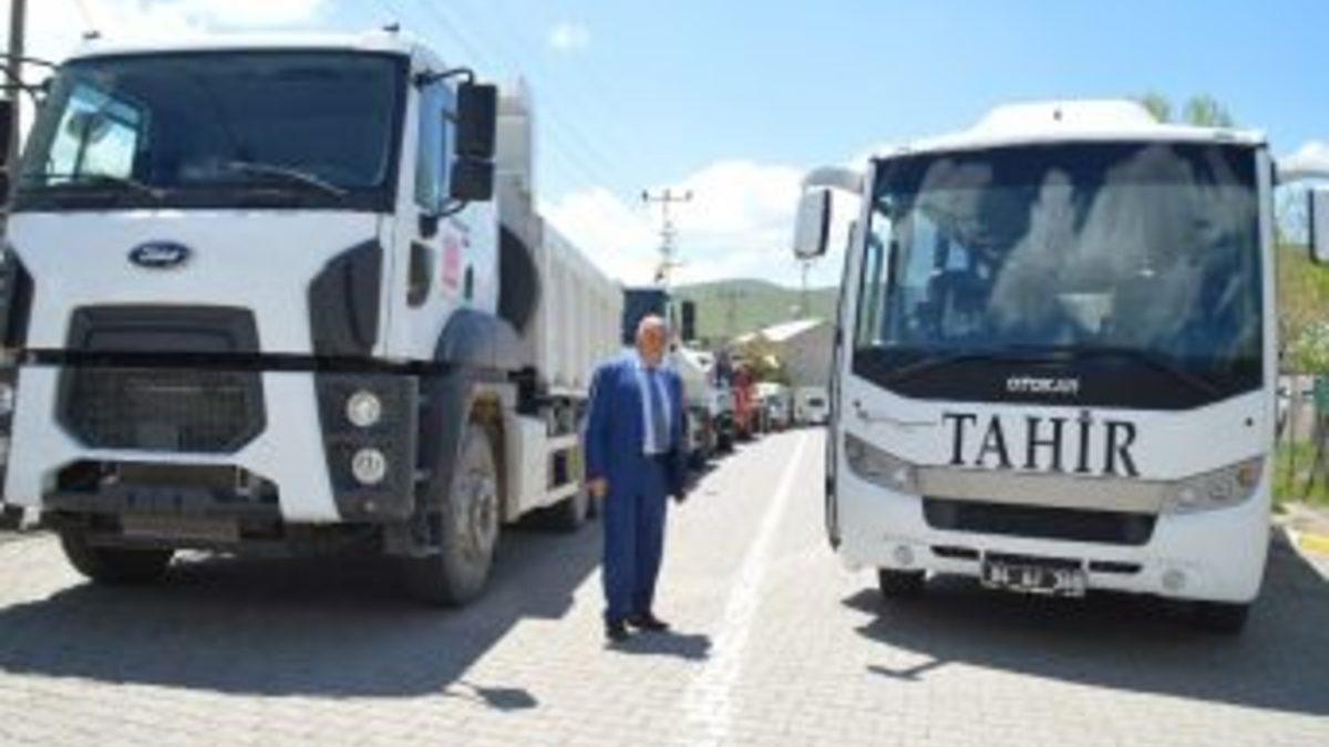 Ağrı’nın En başarılı belediyelerinden biri olan Tahir beldesinde Başkan Seferoğulları Hizmetlerine bir yenisini ekleyerek araç filosuna 2 yeni araç kazandırdı.Tahir belde başkanı Cemal Seferoğulları, yaptığı açıklamada Tahir halkını çok sevdiğini ve hizmetlerine devam edeceğini söyledi. Başkan Seferoğulları, "37 Kişilik yarım otobüsü belediyemizin parasıyla peşin olarak aldık. Eleşkirt - Erzurum arasında haftanın 5 günü yolcu taşıyacak olan bu yarım otobüsten gelen gelirlerle belediyemizin bütçesine katkı sağlamayı düşünüyoruz. Bunun yanında Türkiye Belediyeler birliğinden Beldemize hibe edilen tamperli bir de kamyonumuz geldi. Şuan araç filomuzda 14 adet aracımız bulunmaktadır .Hiç birinin borcu da yoktur" dedi.Yeni araçların Belde halkına hayırlı olmasını dilediğini söyleyen Başkan Seferoğulları her aldığı yeni araç için kurban kestiğini dile getirerek yeni alınan araçlar içinde kurban kesti.