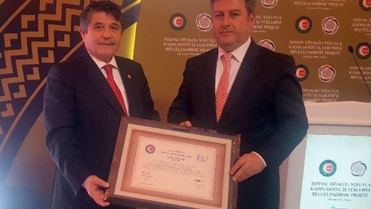 Talas Belediyesi, HAK-İŞ Sendikası Konfederasyonu tarafından ülke çapında düzenlenen ’Sosyal Diyalog Yolu İle Kadın Dostu İş yerleri Projesi’ kapsamında ’Kadın Dostu İş Yeri’ dalında ödüle layık görüldü.Talas Belediye Başkanı Mustafa Palancıoğlu, Ankara’da gerçekleştirilen “Sosyal Diyalog Yoluyla Kadın Dostu İş Yerlerini Belgelendirme Projesi”nin kapanış toplantısı, sertifika ve ödül törenine katıldı.Çalışma ve Sosyal Güvenlik Eğitim ve Araştırma Merkezi (ÇASGEM) ile HAK-İŞ Konfederasyonu ortaklığında yürütülen projenin ödül töreni Cumhurbaşkanı Recep Tayyip Erdoğan’ın eşi Emine Erdoğan, Çalışma ve Sosyal Güvenlik Bakanı Mehmet Müezzinoğlu, eski Aile ve Sosyal Politikalar Bakanı Sema Ramazanoğlu, HAK-İŞ Genel Başkanı Mahmut Arslan, HAK-İŞ Kadın Komitesi Başkanı Fatma Yavuz’un katılımıyla gerçekleşti.Belediye olarak kadına değer veren projelerde her zaman yer aldıklarını ifade eden Talas Belediye Başkanı Mustafa Palancıoğlu, “Kadınlara yönelik çeşitli etkinlik ve projelerle Talaslı kadınlarımızın her zaman yanlarında olmaya çalışıyoruz. Yakında açacağımız Kadın Kültür Merkezi gibi mekanlarımızla ve meslek kurslarımızla onların gelişimine ve istihdamına katkı sağlıyoruz. Bu merkezde kadınlara spor yapma imkanı ve birçok imkan da sunduk. Talas’ta ilk meslek edindirme kursu olan ilk KAYMEK’i açtık ikincisini de yakında açacağız. Aynı zamanda belediyemiz birimlerinde kadınlar müdürlük, şeflik gibi pozisyonlarda görev alıyor ve çalışan personellerimiz arasında çok sayıda kadın bulunmakta.” dedi.Ödülünü Hizmet İş Sendikası Onursal Genel Başkanı Hüseyin Tanrıverdi’den alan Başkan Palancıoğlu, "HAK-İŞ gibi kurumların yaptığı faaliyetlerle ülkedeki toplumsal farkındalık artacak. İş dünyasında kadınların istihdam oranı son 14 yılda yüzde 20’lerden yüzde 30’lara yükseldi. Kadın yönetici sayısı 2003’te 114 bin iken bu sayı 2016’da yüzde 82’lik bir artışla 208 bine çıktı. ’Sosyal Diyalog Yoluyla Kadın Dostu İş Yerlerini Belgelendirme Projesi kapsamında 6 sektörde ve Kayseri’nin de içinde bulunduğu 7 ilde faaliyet gösteren sendikaların örgütlü olduğu iş yerlerinden işveren ve iş yeri temsilcilerine yönelik eğitim çalışmaları yapıldı. Kadın çalışanlar ve işveren temsilcisinden oluşan 80 iş yerinden toplam bin 192 kişiyle yüz yüze görüşülüp, anket çalışmaları ve saha çalışmaları gerçekleştirilmiş. Bu çalışmalar sonrası 30 işletmenin ‘Kadın Dostu İşyeri’ seçildiği belirtiliyor. Bu proje büyük bir emeğin sonucu. Kendilerine çok teşekkür ederim. Biz de Talas Belediyesi olarak ‘Kadın İşletmeci Dostu’ seçilerek ödül aldık. Bu ödüle bizi layık gören HAK-İŞ Sendikası ve ÇAŞGEM’e çok teşekkür ediyorum.” diye konuştu.