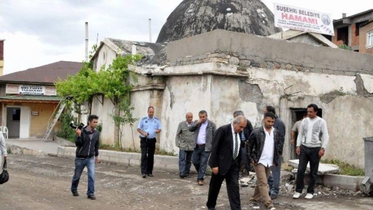 Suşehri ilçesi Cumhuriyet Mahallesinde bulunan Suşehri Belediyesi’ne ait tarihi hamamın etrafındaki eski yapılar yıkılıyor.