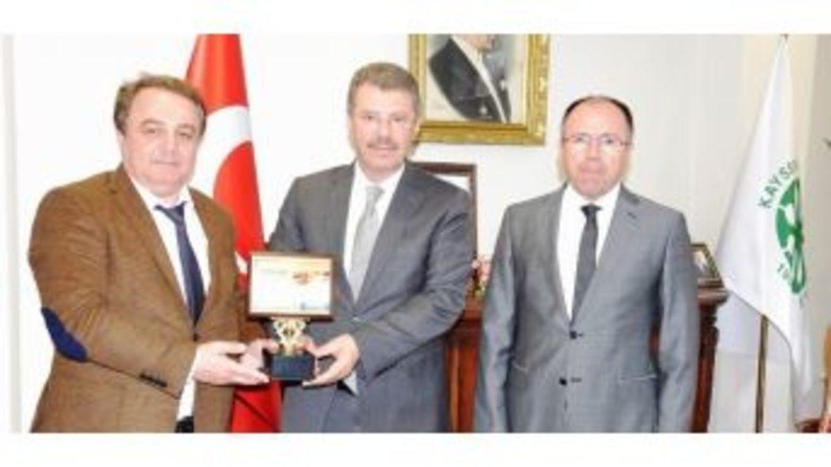 Atlas Fuarcılık yöneticileri, Türk Dünyası ve Akraba Toplulukları 10. Kayseri Tarım Fuarına katkılarından dolayı Başkan Akay’a teşekkür ziyaretinde bulundu.Atlas Fuarcılık yöneticileri, Kayseri Pancar Kooperatifi Yönetim Kurulu Başkanı Hüseyin Akay’ı makamında ziyaret ederek 10.Tarım Fuarına katkılarından dolayı teşekkür etti. Atlas Fuarcılık adına Fevzi Atasagun tarafından Başkan Akay’a plaket takdim edildi.Ziyarette esnasında Kayseri Şeker Fabrikası Genel Müdürü Levent Benli de hazır bulundu.