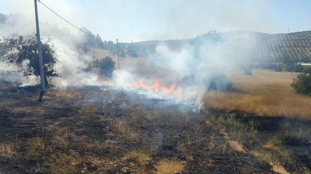 Manisa’nın Kula ilçesinde ormanlık alan kenarında bulunan bir tarlada çıkan ot yangınında 1 hektarlık alan zarar görürken, itfaiyenin zamanında müdahalesi yangının ormana sıçramasını önledi.Yangın, ilçeye 5 kilometre uzaklıktaki Sabuncukuyu Mahallesi’nde bir tarlada çıktı. Sebebi bilinmeyen ve kısa sürede tarım arazisini saran alevler rüzgarın da etkisiyle büyüdü. Yangını fark eden mahalle sakinleri itfaiyeye haber verdi. Kısa sürede yangın alanına ulaşan Manisa Büyükşehir Belediyesi Kula itfaiye ekipleri, alevlere zamanında müdahale ederek yangını söndürüp ormanlık alana sıçramasını önledi. Yaklaşık 1 hektarlık tarım alanının zarar gördüğü yangında can kaybı yaşanmazken soruşturma başlatıldı.