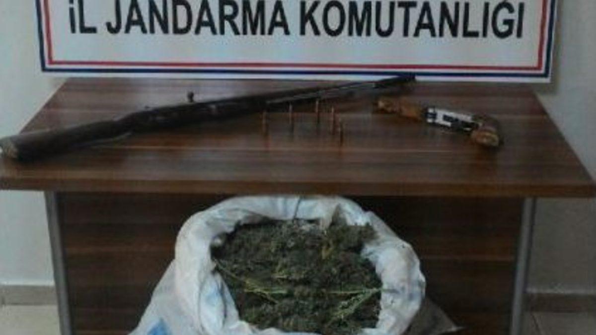 ŞANLIURFA, Karaköprü İlçe Jandarma Komutanlığı ekipleri, Tülmen Mahallesi’nde Bekir R.’nin tarlasında uyuşturucu bulunduğu bilgisi üzerine harekete geçti. Jandarmanın yaptığı baskında, tarlada kurumaya bırakılan 1137 kök hintkeneviri, 1.5 kilo esrar ile 2 tüfek ele geçirildi. Uyuşturucu ve tüfekle gözaltına alınan Bekir R., gözaltına alınarak sorgulanmak üzere İlçe Jandarma Komutanlığı'na götürüldü.