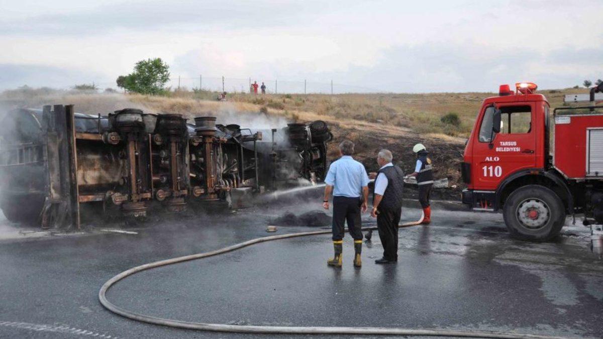 Edinilen bilgiye göre Mehmet Polat’ın (50) kullandığı 63 K 8420 plakalı tanker lastiğinin patlaması sonucu TEM otoyolu Akgedik köyü yakınlarında devrildi. Sürücü Mehmet Polat, kazadan yara almadan kurtuldu. Aracın devrilmesi sonucu çıkan yangına Mersin ve Tarsus’tan gelen itfaiye ekipleri müdahale etti. Yaklaşık 2 saat kapalı kalan yol söndürme çalışmasından sonra trafiğe açıldı. Yangın sonrasında tanker kullanılamaz hale gelirken, kazayla ilgili soruşturma başlatıldı.