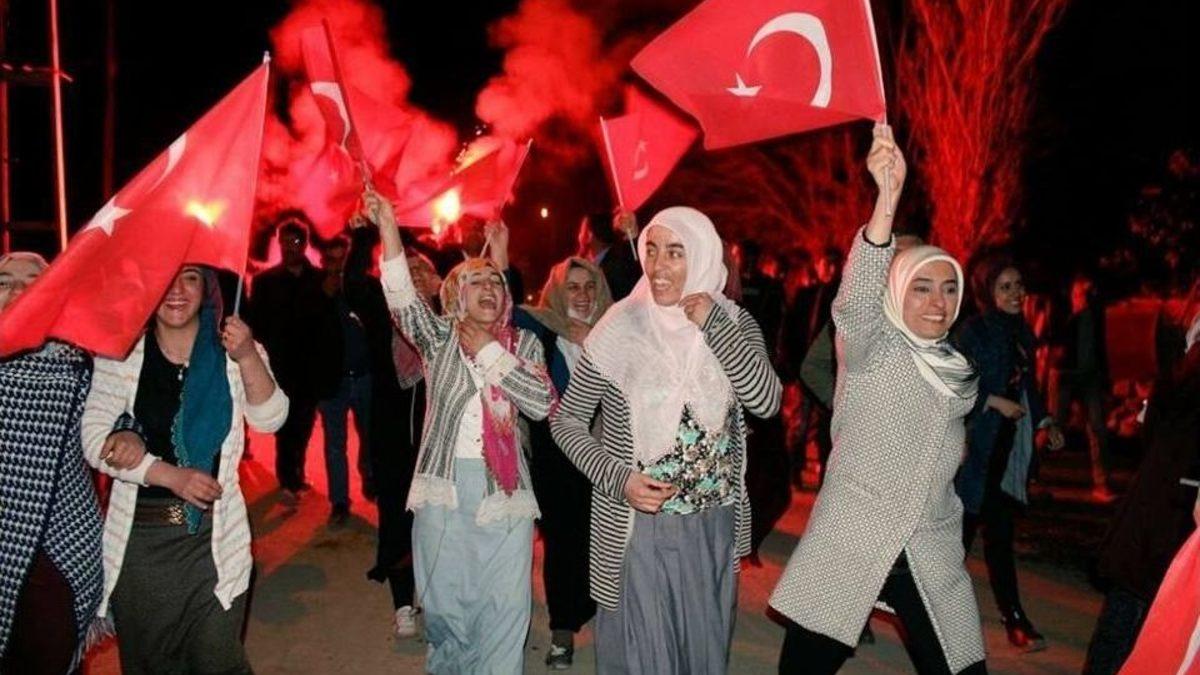 Referandum çalışmalarını sürdürdüğü Tekman’da sonuçları takip eden AK Partili Zehra Taşkesenlioğlu, yüzde 51.4’lük evet oyunu Türk Bayraklarıyla kutladı.Referandum çalışmaları kapsamında Güney ilçelerine kamp kuran Erzurum Milletvekili Zehra Taşkesenlioğlu, 1 Kasım 2015’de AK Parti’nin aldığı oyları büyük oranda artırdı. Taşkesenlioğlu, başarısını Tekman’da vatandaşlarla birlikte kutladı.1 Kasım seçimlerinin ardından Güney ilçeleri ile bağını koparmayan AK Parti Erzurum Milletvekili Zehra Taşkesenlioğlu, referandum çalışmaları kapsamında yaklaşık bir ay önce geldiği seçim bölgesinde çalmadık kapı bırakmadı. Son bir haftayı Hınıs, Tekman, Karayazı ve Karaçoban ilçelerine konuk olarak geçiren Taşkesenlioğlu, kanaat önderleri, esnaf, partililer, köy ziyaretleri ve ev toplantıları yaparak Cumhurbaşkanlık sitemini anlattı. Sık sık bayanlar ile de bir araya gelen Taşkesenlioğlu, oy oranlarının artmasında büyük rol oynadı.Yapılan çalışmalar ile; 1 Kasım seçimlerinde AK Parti’ye yüzde 35,64 oy veren Hınıs, bu oranı referandumda yüzde 51,02’ye çıkardı. HDP’nin kalelerinden olan Karaçoban İlçesi ise yüzde 15,64 oy verdiği AK Parti’ye desteğini artırarak yüzde 33,8’e çıkarmış. Yüzde 10,3 oy oranına sahip olan Karayazı İlçesi, desteğini büyük oranda artırarak yüzde 40 Evet oyu vermiş. Tekman ilçesi ise yüzde 17 olan oy oranını yüzde 40’a çıkarmış.Seçim çalışmalarını devam ettirdiği Tekman’da oy kullanan Taşkesenlioğlu, sonuçları da buradan takip etti. Vatandaşlarla birlikte ekran başında hem ülke sonucunu hem Erzurum hem de ilçelerin referandumda verdikleri desteği memnunlukla izleyen Taşkesenlioğlu, Tekmanlılarla birlikte kutlama yaptı. Elinde Türk Bayrağıyla Tekman caddelerini gezerek kutlama yapan Taşkesenlioğlu, destek olan vatandaşlara da teşekkür etti.Türkiye’nin tarihi bir adım attığını belirten AK Partili Taşkesenlioğlu, sosyal medya hesabından vatandaşlara da teşekkür etti. Taşkesenlioğlu, mesajında şunları ifade etti: “Teşekkürler Erzurum, teşekkürler Dadaşlar. Erzurum bu Nisan’da bir başka güzel. Dadaşlar diyarı her zamanki gibi vatanına, milletine ve Reis’ine sahip çıktı. Cumhurbaşkanlığı hükümet sistemi için güçlü bir tuğla koyan Erzurum, kendine düşeni yaparak yine hepimizi gururlandırdı. Partim ve milletimiz adına tüm hemşehrilerimize en kalbi duygularımla teşekkür ediyor, selam ve saygılarımı sunuyorum. Durmak yok, yola devam. Allah yar ve yardımcımız olsun.”