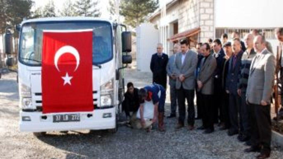 Kesilen kurban ve yapılan duanın ardından hizmete giren temizlik aracını ilk olarak Taşköprü Belediye Başkanı Hüseyin Arslan direksiyona geçerek kullandı.