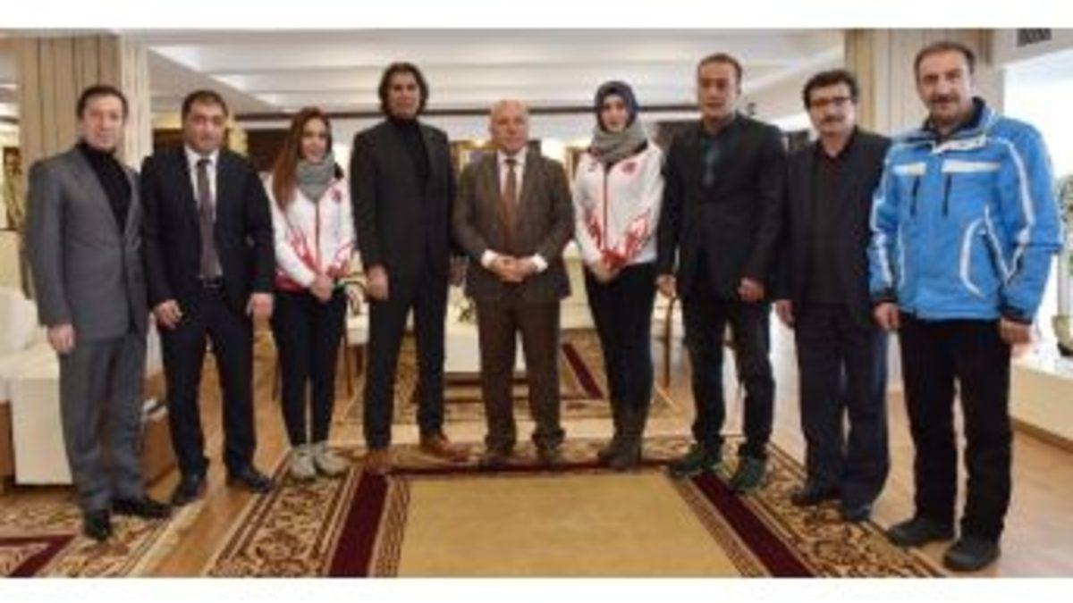 Türkiye Curling Federasyonu (TCF) Başkanı Doç. Dr. Kenan Şebin, Erzurum Büyükşehir Belediye Başkanı Mehmet Sekmen’i ziyaret etti.TCF Başkanı Doç. Dr. Şebin, Yönetim Kurulu Üyeleri Ahmet Çelebi, Ensar Şahiner, Murat Akın, İl Temsilcisi Zeyit Palabıyık ile İskoçya’da yapılan son Avrupa Şampiyonası’nda ikinciliğini kazanan Erzurumlu milli sporcular Başkan Sekmen ile görüştü. Şebin, 14 Aralık’ta Erzurum Curling Arena’da başlayan ve 18 Aralık’a kadar devam edecek olan 1. ve 2. Türkiye Curling Ligi’ne desteklerinden dolayı Başkan Sekmen’e teşekkür ederek bir plaket takdim etti. Şebin, Erzurum’da devam eden Türkiye Curling Ligi’ne 40 kulüp, 72 takım, 360 sporcunun katıldığını ve 20 hakemin görev yaptığını kaydetti. Ligin birinci etabının 18 Aralık Pazar günü son bulacağını belirten Şebin, Türkiye Curling Ligi’nin finallerinin 15-17 Ocak 2017 tarihlerinde yine Erzurum’da yapılacağını sözlerine ekledi. Başkan Mehmet Sekmen de, spora ve sporcuya olan desteklerinin sürekli devam edeceğini belirterek, Avrupa ikincisi Erzurumlu milli sporcuları altınla ödüllendirdi. Sekmen, Erzurumlu milli sporcuların dünya şampiyonluğu derecesi elde etmeleri halinde daha büyük hediyelerle ödüllendireceğini belirtti.