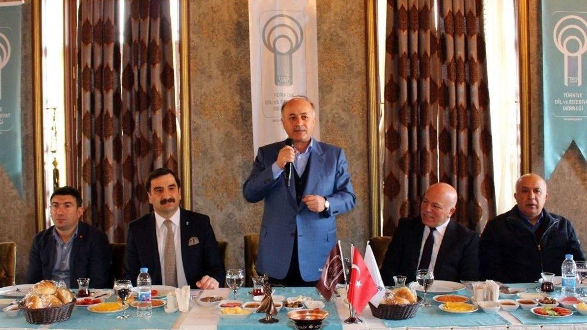 Türkiye Dil ve Edebiyat Derneği Erzurum Şubesi, tanışma ve istişare amacıyla şehir protokolünün, STK temsilcilerinin, üniversiteden edebiyatçıların ve şehrin ileri gelenlerinin katıldığı bir kahvaltılı toplantı organize etti. Kahvaltı programına Erzurum Valisi Seyfettin Azizoğlu, Erzurum Büyükşehir Belediyesi Başkanı Mehmet Sekmen, İl Kültür ve Turizm Müdürü Cemal Almaz, çok sayıda il müdürü, AK Parti İl Başkanı Mehmet Emin Öz, STK temsilcileri, kanaat önderleri, TDED Erzurum şubesinin yönetim kurulu ve Muammer Cindilli başkanlığındaki istişare heyeti katıldı.Ertaş: “Dilimiz kimliğimizdir. Kimliğimizi ortak değerimizdir”Toplantının açılış konuşmasını yapan TDED Erzurum Şube Başkanı Murat Ertaş, “Dilimiz Kimliğimizdir” anlayışıyla yola çıkan derneğin Türkçe’nin gelişmesi, dil bilincinin toplumda yerleşmesi, dil ve tabela kirliliğinin önlenmesi, genç kalemlerin önünün açılması için çalışmalar yaptığını ifade ederek TDED genel merkezin çabalarıyla çıkan yasayla Türkçeye uygun F klavyeye 2017 sonuna kadar tüm kamu kurum ve kuruluşların geçeceğini hatırlattı. Anayasa çalışmaları içerisinde anayasanın dili konusunda TDED öncülüğünde çalıştay yapıldığını dile getiren Ertaş, Türkiye’nin en büyük yarışması olup T.C. Cumhurbaşkanlığı’nın himayelerinde yapılan ve darbeler tarihini, 15 Temmuz’u konu alan “Liseliler Destanı Yazıyor” başlıklı Türkiye geneli liseliler arası yarışmanın da ödül töreninin Beştepe’de yapılacağını söyledi. TDED Başkanı Murat Ertaş konuşmasına şöyle devam etti: “Dil bireyin, kamunun ve milletin beslendiği en önemli kaynaktır. Geçtiğimiz hafta 2017 yılı yine Cumhurbaşkanımızın himayelerinde ‘Türk Dili Yılı’ ilan edildi. Kimliğimizin en önemli göstergesi olan dilimiz üzerine kaygı taşıyan insanlar için bu, çok önemli fırsat. İstişare heyetimiz, yönetim kurulumuz ve üyelerimizle beraber Türkçemiz üzerine yapılacak her türlü çalışma ve organizasyonda üniversitelerimizle, kamu kurumlarımızla ve STK’lerimizle işbirliği yapmaya hazırız. Çünkü dil hayatın her alanını kuşatıyor: İş dünyasında, pazarlama ve reklam ifadelerinde, tabelalarda dil önemlidir Mahkeme salonlarında, hukukta dil çok önemlidir. Şöyle ki söz ola kese savaşı, söz ola kestire başı Camide, kürsüde, minberde dil önemlidir. İlk ve ortaöğretim müfredatında Türkçemiz öğretilirken kullanılan terimler ve dil önemlidir; türküde, şarkıda, televizyonda, film sektöründe, internet dünyasında kullanılan dil önemlidir Hal böyleyken TDED olarak yapılacak çalışmaları, çalışmanın konusuna göre ilgili paydaşlarımızla yapmalıyız. Ortak akılla hareket etmeliyiz. İşte bu nedenle bu toplantıyı tertip ettik. Katılımlarınızdan dolayı teşekkür ediyor, bugün burada ve ilerisinde sizlerden gelecek fikirleri ve projeleri önemsediğimizi bilmenizi istiyoruz.”Başkan Sekmen: “Dilimiz vatanımızdır”Toplantıda bir konuşma yapan Erzurum Büyükşehir Belediye Başkanı Mehmet Sekmen ise Türkiye Dil ve Edebiyatı Derneği’nin Erzurum’da şube açmasının oldukça memnun edici gelişme olduğunu söyleyerek TDED’in Genel Başkanı Ekrem Erdem’in uzun yıllardır Türkçe’mizin korunması ve gelişmesi için hayret sarf eden biri olduğunu belirtti. Başkan Sekmen Türkçe dilimizin vatanımız olduğunu ve üzerinde titizlikle durulması gerektiğini söyleyerek konuşmasına şöyle devam etti:“Bir milletin hayat damarlarından biri de dilidir. Dil demek, millet demektir. Dil, geçmişle bugünü birbirine bağlayan en önemli vasıtadır. Bugünden geleceğe bırakılacak en önemli miras da yine dildir. Ana dilimiz Türkçe, yeryüzünün en eski ve en geniş coğrafyasında konuşulan zengin bir kültür, bilim ve sanat dilidir. Bu geniş vatan coğrafyasını en güzel anlatan dil kuşkusuz Türkçe’dir. Vatanını sevmeyen, öz kültüründe ve dilinden beslenmeyen bir kişinin insanlığa faydalı biri olması imkânsızdır. İnsan vatanını sever. Tarihi boyunca bağımsızlığı ve dini uğruna birlikte mücadele vermiş bir milletin torunları olarak; dili bir, dini bir, vatanı bir ve bayrağı bir olan bizlerin sahip çıkacağı en büyük değer kuşkusuz dilimiz, edebiyatımız kısacası milli kültürümüzdür.Mili birliğimizin simgesi olan dilimiz güzel Türkçemizin, gelecek nesillere aktarılması ve bu konuda toplumsal duyarlılık oluşturmak adına kurulan Türkiye Dil ve Edebiyat Derneği, bugün gelinen noktada kendi kültürünü sahiplenen şuurlu ve nitelikli bir gençliğin oluşmasına da katkıda bulunmaktadır. Parlamento’da 22’nci dönemde birlikte görev yaptığım ve derneğimizin genel başkanı olan değerli arkadaşım Ekrem Erdem’e ve Murat Ertaş kardeşime çok teşekkür ediyorum. Sayın Erdem uzun yıllardır öz Türkçe’mizin korunması ve gelişmesi için yoğun gayretler sarf ediyor. Türkiye Dil ve Edebiyat Derneği Erzurum Şube’mizin düzenlediği bu güzel toplantıda son olarak şunu söylemek istiyorum. Nice yazar, şair ve ozanın ezgilerinde, şiir severlerin düşünce ikliminde, doğası, yaşamı, tarihi, kültür ve medeniyeti yeniden canlanan bu kenti, edebiyatçılarla, yazarlarla hep birlikte inşa etmekteyiz. Bu yüzden fikirlerinizi çok önemsediğimi bir kez daha ifade etmek istiyorum. Sizlere sanat ve edebiyat yaşamınızda başarılar diliyorum.”Vali Azizoğlu: “Erzurum dil ve edebiyat başkenti şehirlerdendir”Erzurum Valisi Seyfettin Azizoğlu ise bir milleti sömürmenin, kökünden koparmanın en önemli yollarından birinin onu dilinden, kültüründen uzaklaştırmak olduğuna dikkat çekerek binlerce yıllık medeniyetin mirası olan dilimize sahip çıkmamız gerektiğini ifade etti. Vali Azizoğlu şunlar