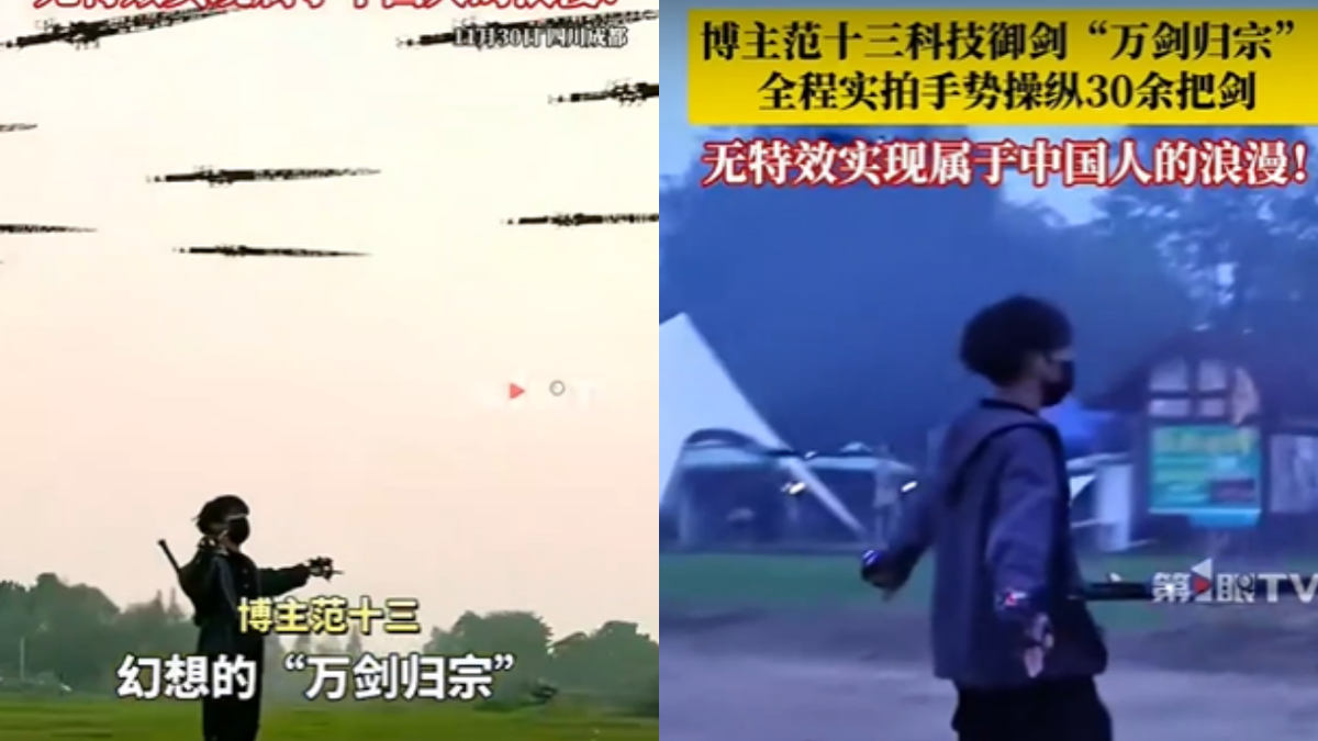 Çin’in Sichuan eyaletinden influencer Fan Shisan'ın pervanelerle donatılmış uçan kılıç sürüsünü gökyüzüne kaldırdığı anlar sosyal medyaya damga vurdu.